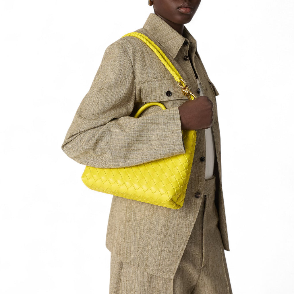 حقيبة بوتيغا فينيتا صغيرة بمقبض علوي أنديامو للنساء باللون الأصفر