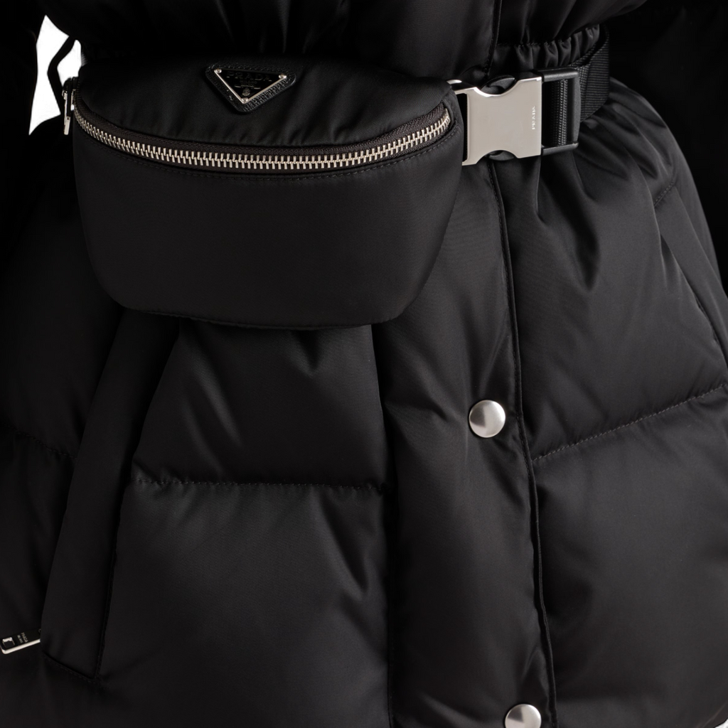 جاكيت برادا ري-نايلون من ريش الإوز للنساء باللون الأسود