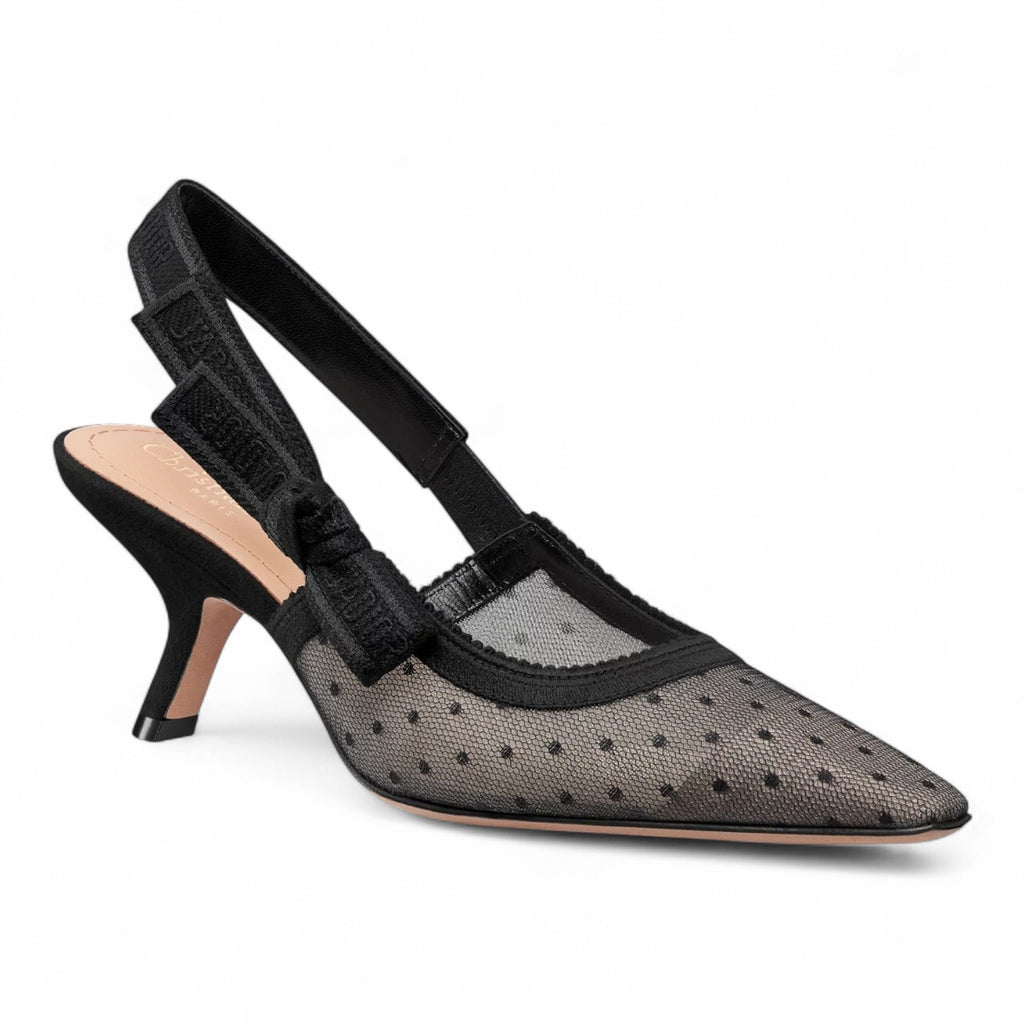 حذاء ديور جادور ذو الكعب العالي من القماش الشبكي الشفاف واللون الأسود
