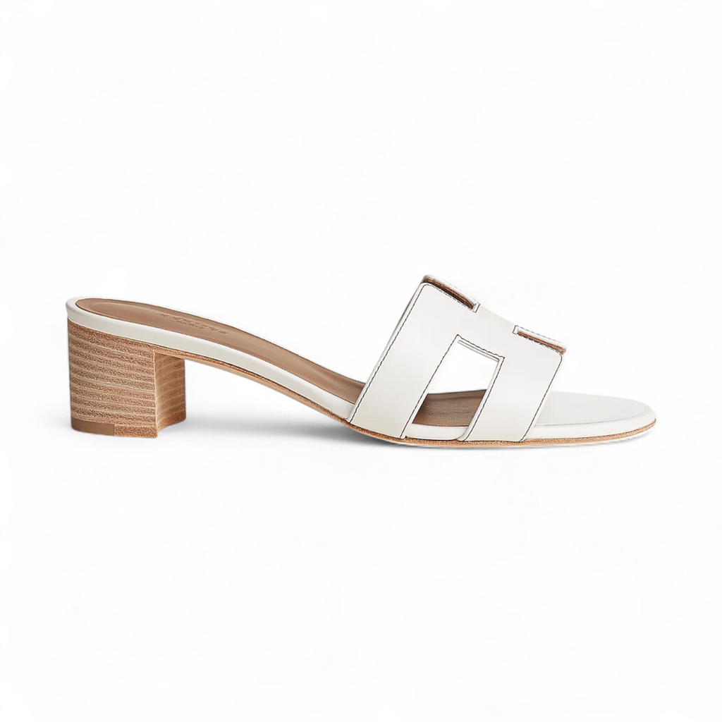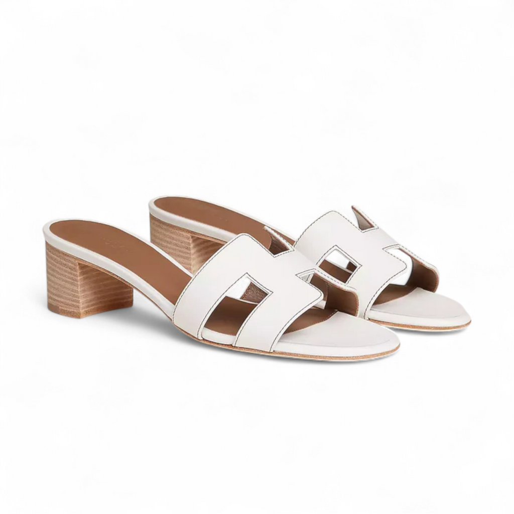حذاء هيرمس أواسيس نسائي بكعب أبيض من جلد العجل