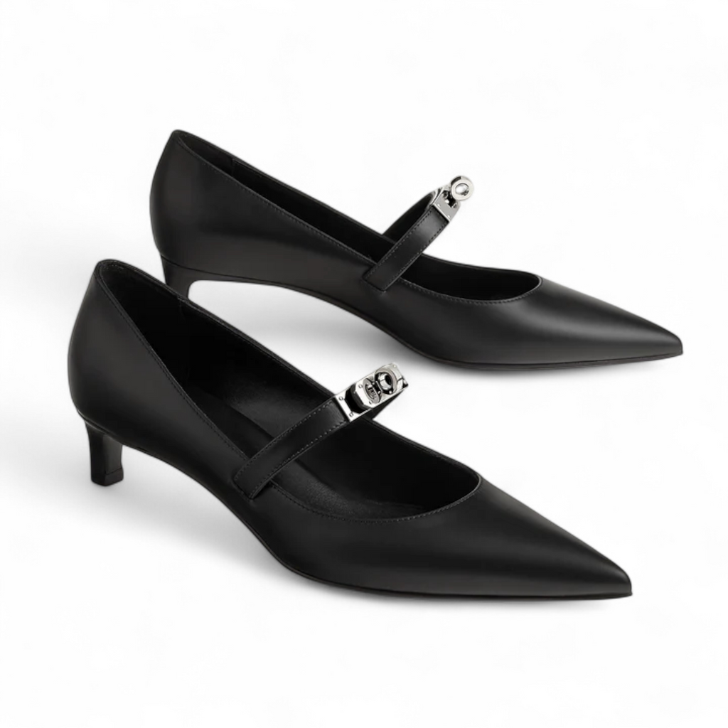حذاء هيرمس جيجي 50 نوار بكعب عالٍ للنساء