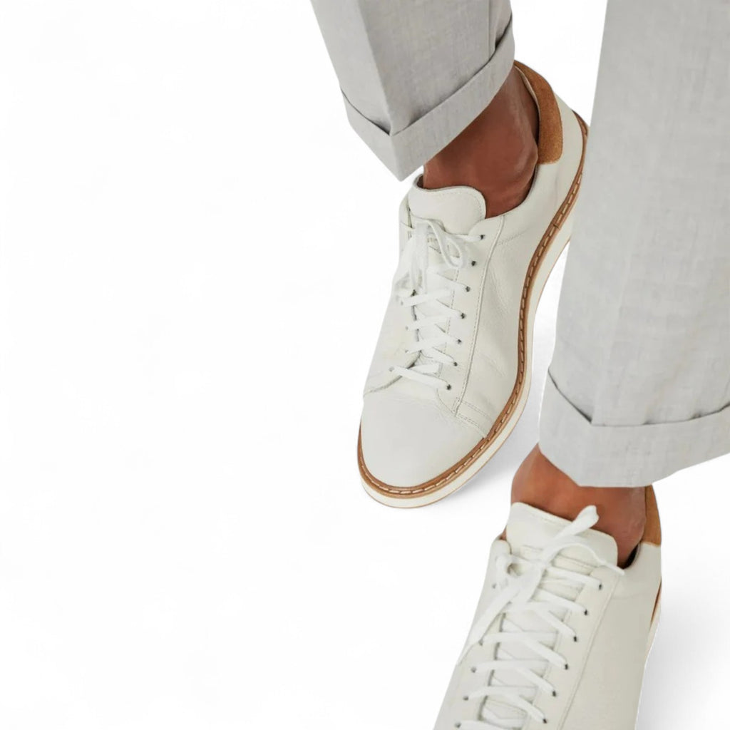 حذاء رياضي من جلد العجل بلون بيج من برونيللو كوتشينيلي بأجزاء متباينة - سيتم شحن لمقاس هذا المنتج خلا 15-30 يوم