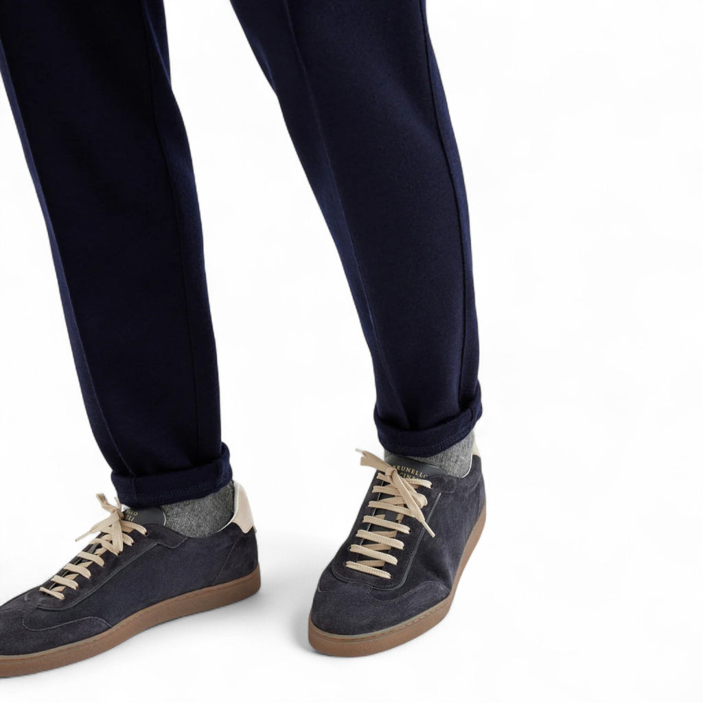 حذاء رياضي رجالي من برونيللو كوتشينيلي مصنوع من الجلد السويدي المغسول باللون الكحلي - سيتم شحن لمقاس هذا المنتج خلا 15-30 يوم