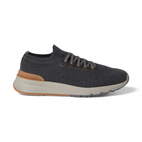 برونيلو كوتشينيلي كنزة صوف وجلد عجل نصف مصقول مع بطانة داخلية دافئة للرجال حذاء جري بني داكن