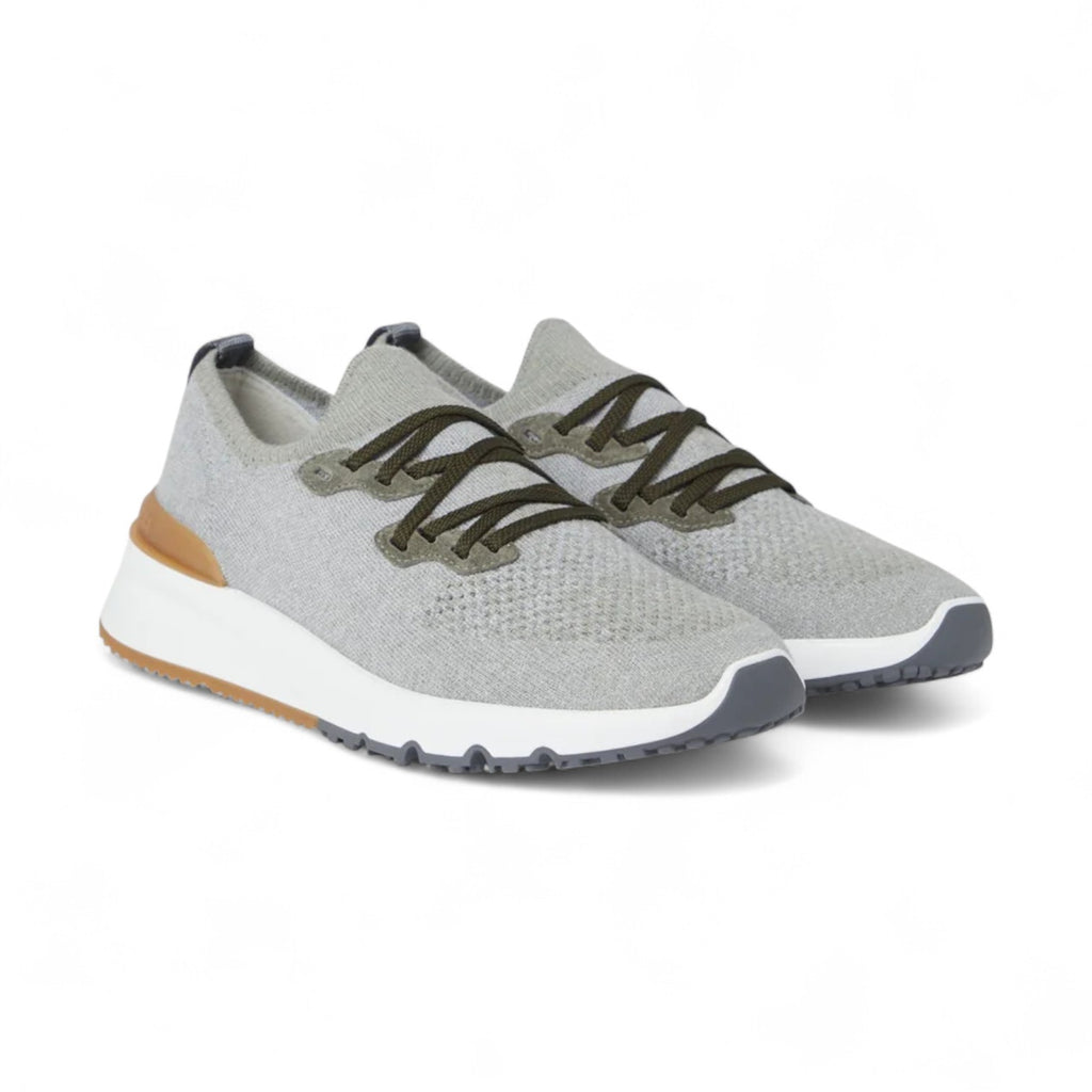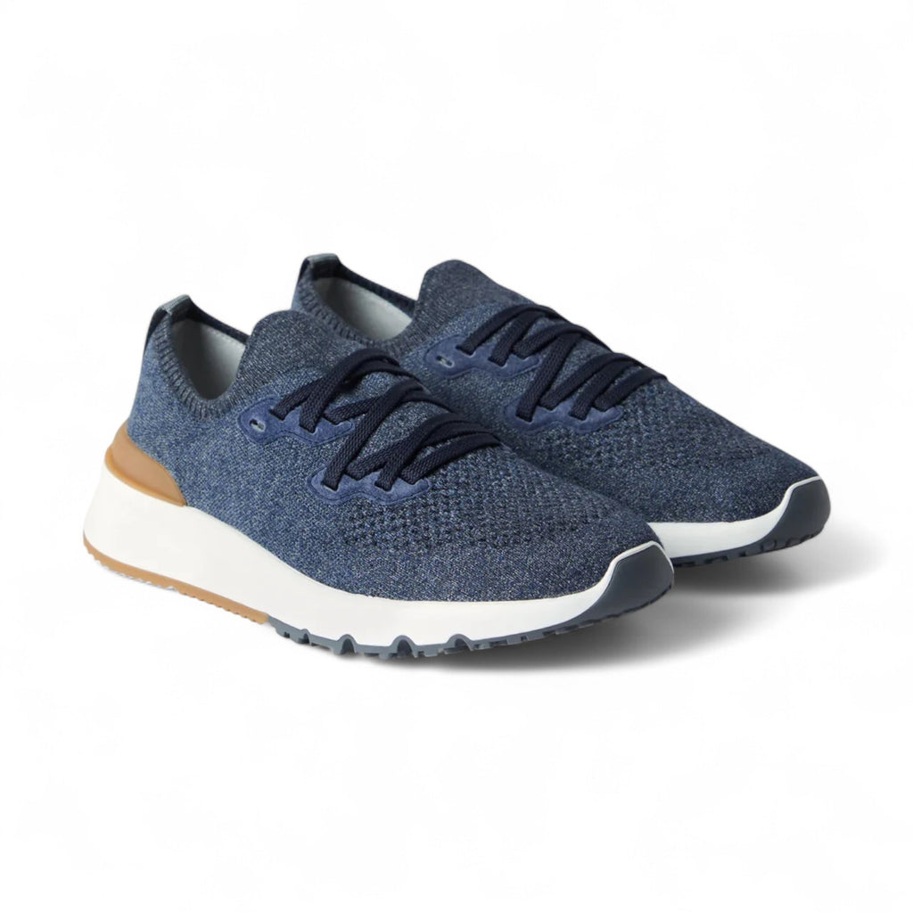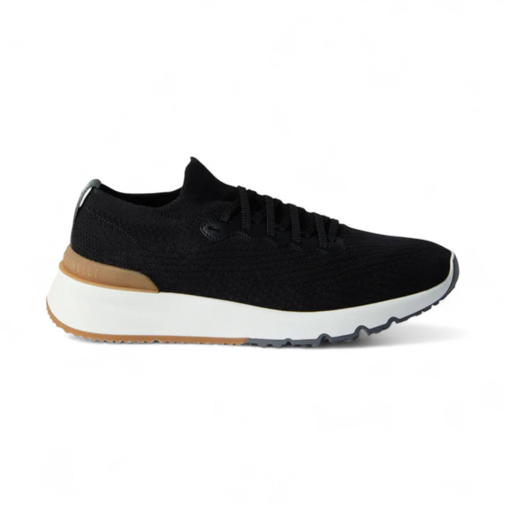حذاء رياضي رجالي من BRUNELLO CUCINELLI مصنوع من القطن المحبوك وجلد العجل باللون الأسود