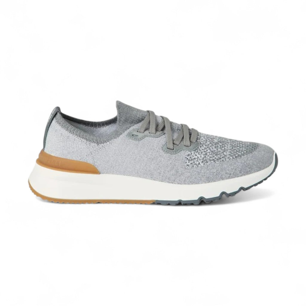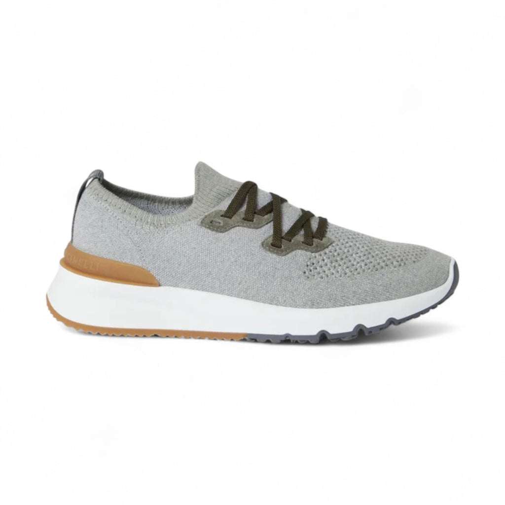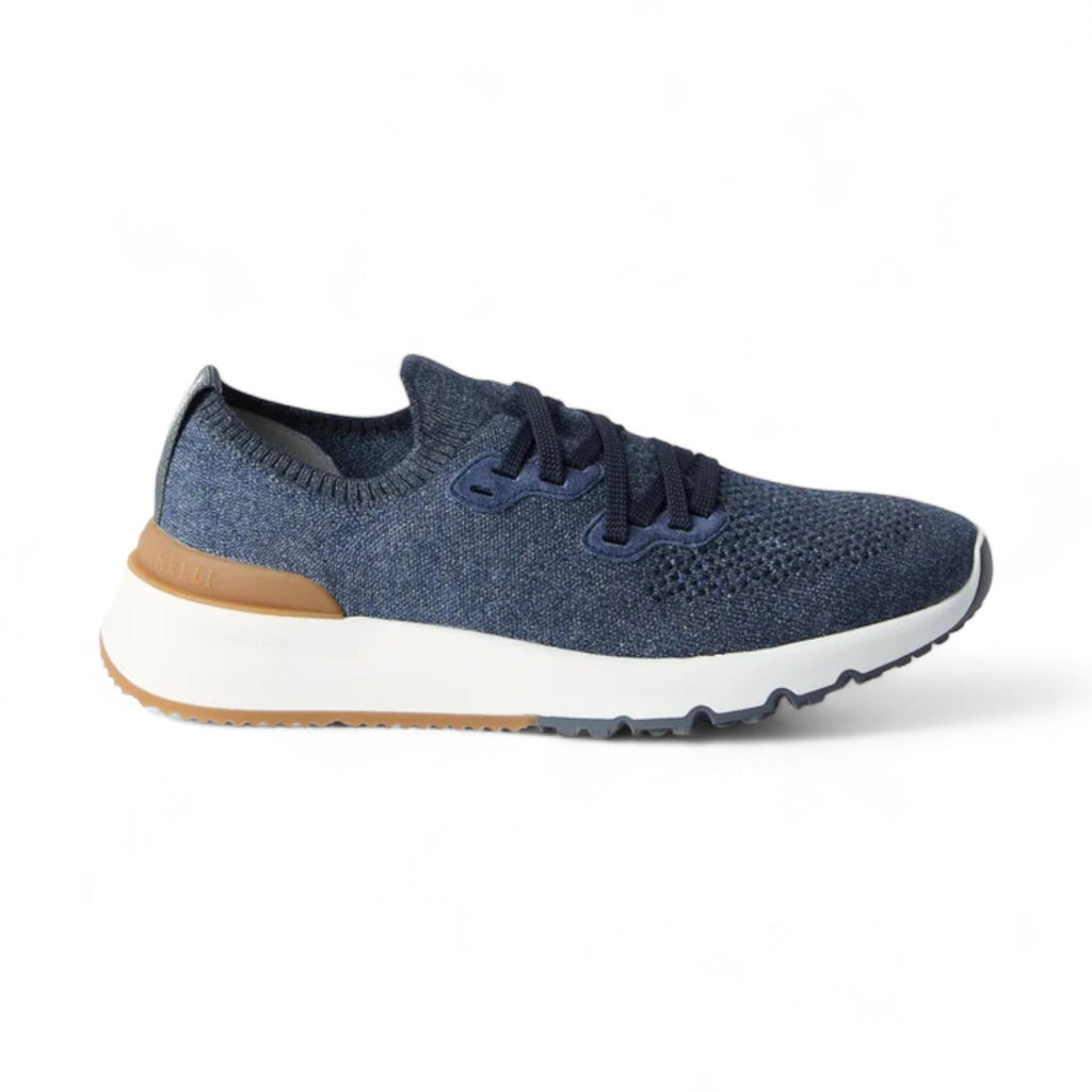 حذاء رياضي رجالي من BRUNELLO CUCINELLI مصنوع من القطن المحبوك وجلد العجل باللون الأسود