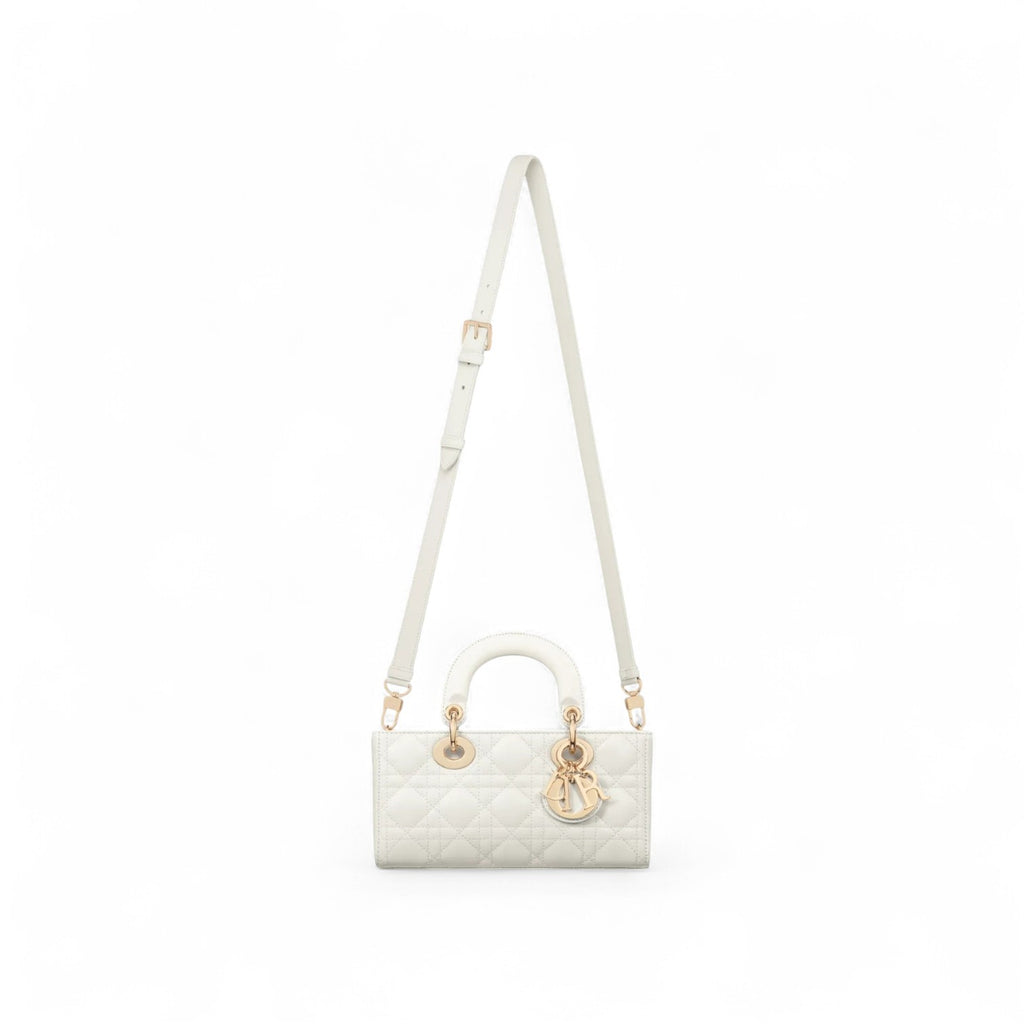 حقيبة ديور كاناج ميني ليدي دي-جوي بيضاء من جلد الحمل