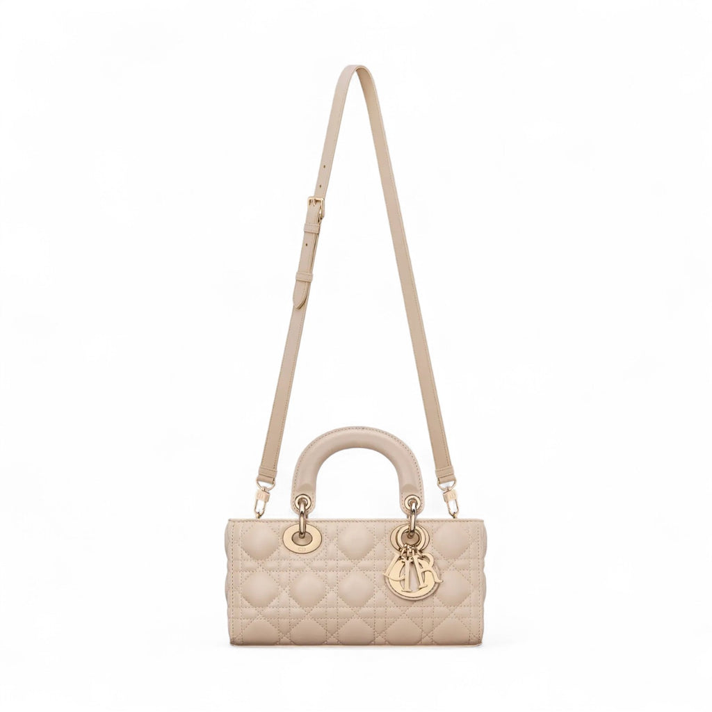 حقيبة DIOR CANNAGE LAMBSKIN الصغيرة للسيدات D-JOY باللون البيج