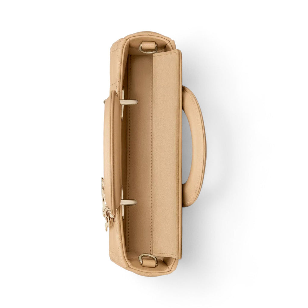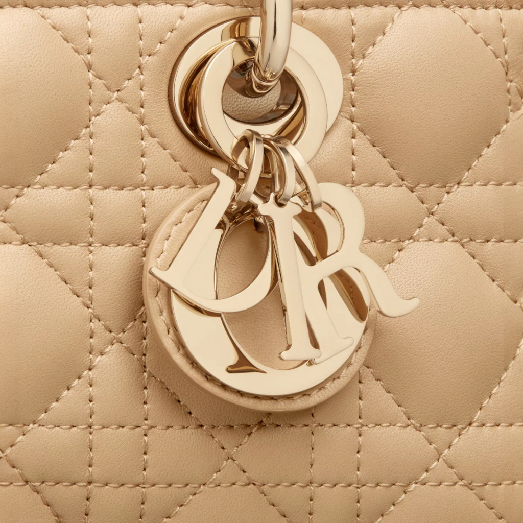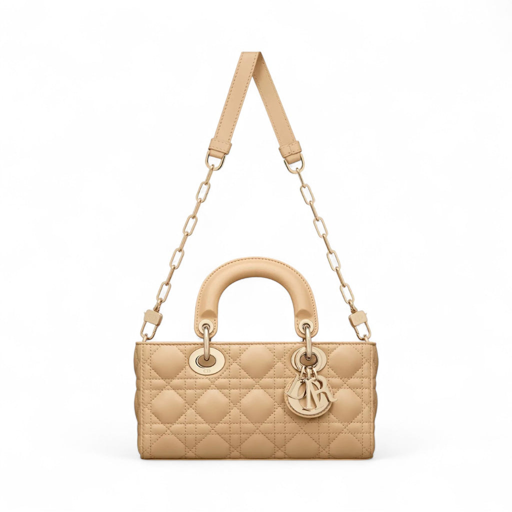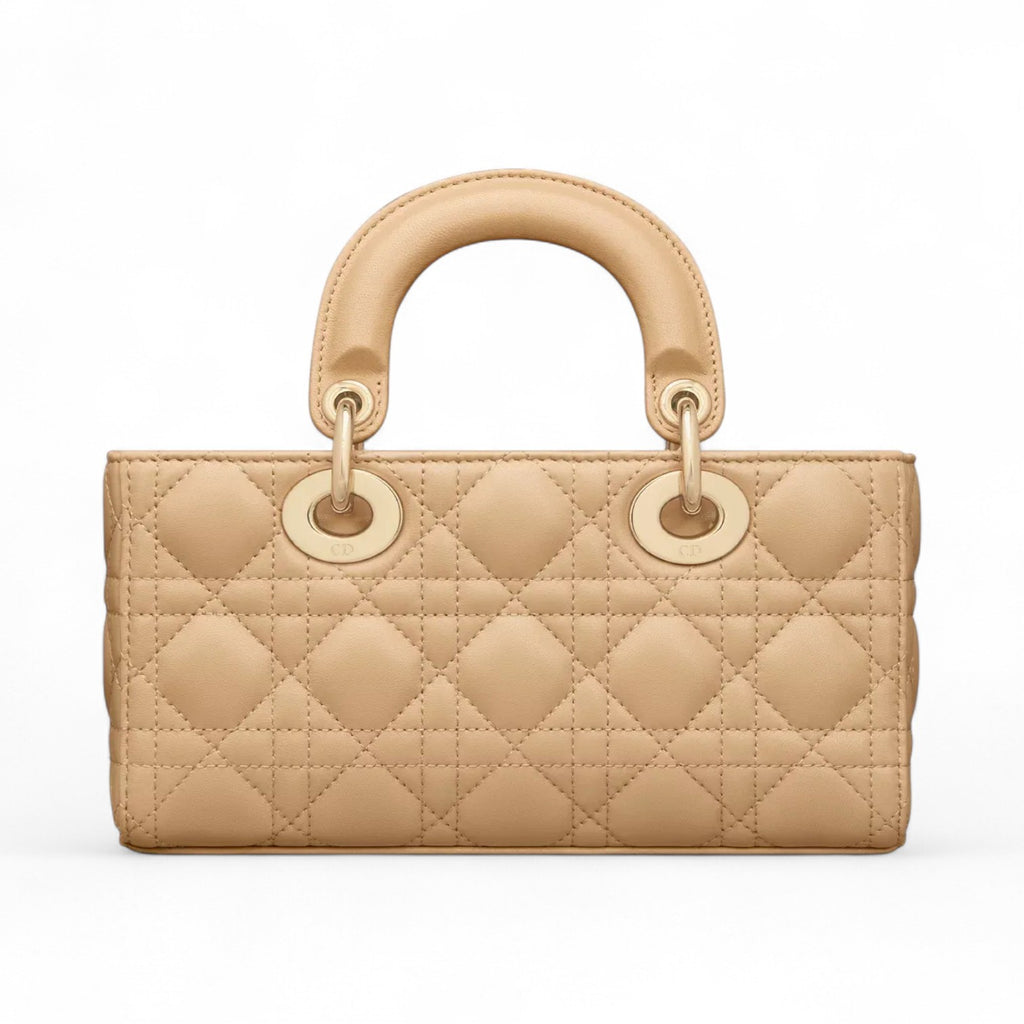 تُجسّد حقيبة ليدي دي-جوي رؤية الدار للأناقة والجمال من خلال إبراز الجماليات الانسيابية الأيقونية لسلسلة ليدي ديور. صُنعت من جلد حمل بلون لاتيه مع تطريز كاناج، ويكتمل تصميمها الراقي والخالدي بحليات ديور المعدنية ذات اللمسة الذهبية الباهتة التي تُضفي لمسةً من التألق على تصميمها. تتميز حقيبة ليدي دي-جوي الصغيرة بحزام سلسلة قابل للفصل وآخر جلدي قابل للتعديل والإزالة، ويمكن حملها باليد أو على الكتف أو كحقيبة كروس كرفيقة يومية.