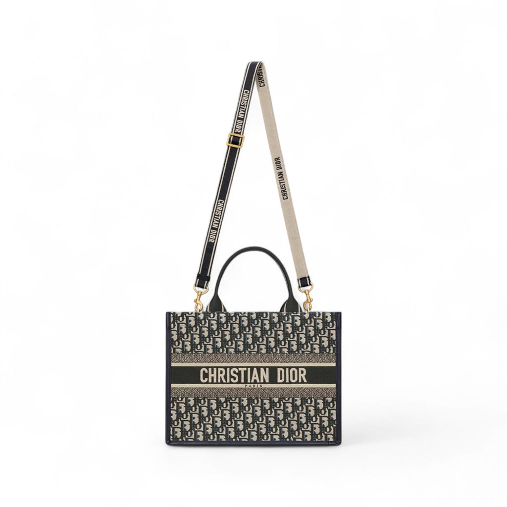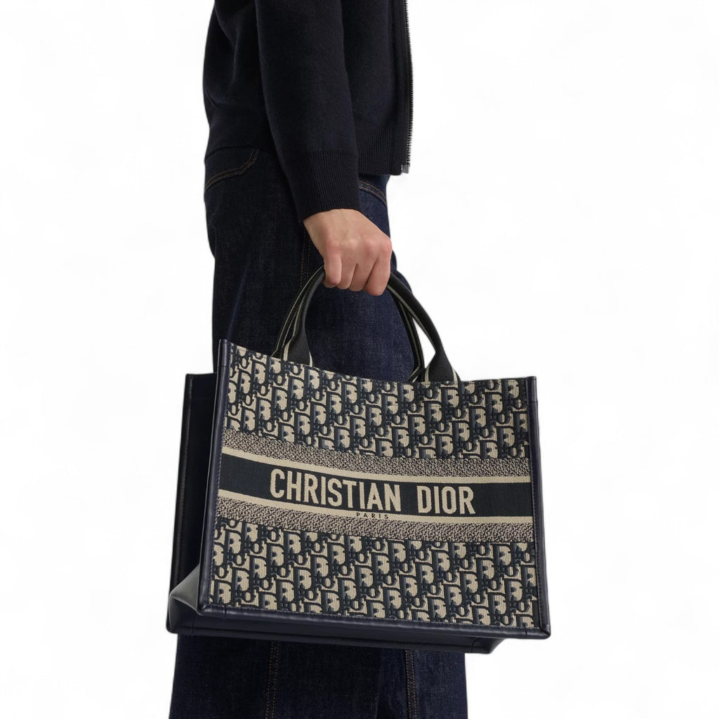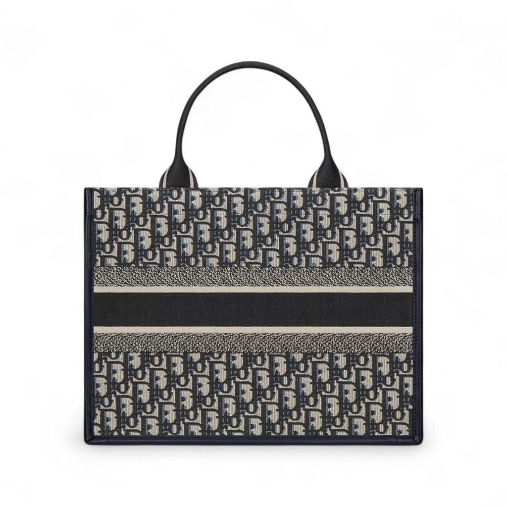 حقيبة ديور بوك توت المميزة من ماريا غراتسيا كيوري متوفرة بتصميم أنيق. يجمع تصميمها الراقي بين جلد العجل الأزرق وتطريز ديور أوبليك المميز ذي الألوان المتجانسة. صُممت الحقيبة لتنظيم جميع أغراضك اليومية، وتحتوي على جيب داخلي بسحاب وجيوب منزلقة. تتميز هذه الحقيبة العملية متوسطة الحجم بحزام مطرز قابل للتعديل والإزالة، مما يُجسّد براعة ديور، ويمكن حملها باليد أو على الكتف.