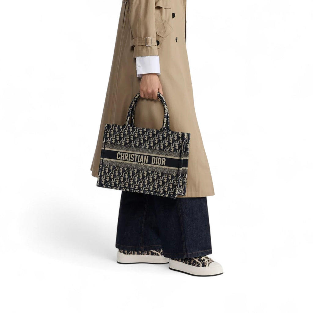 قدمت ماريا غراتسيا كيوري، المديرة الإبداعية لكريستيان ديور، حقيبة ديور بوك توت، التي أصبحت عنصرًا أساسيًا في جماليات ديور. صُممت هذه الحقيبة لحمل جميع الضروريات اليومية، وهي مطرزة بالكامل بنقش ديور أوبليك باللونين البيج والأزرق. تُجسّد هذه الحقيبة المتوسطة، المزينة بشعار كريستيان ديور باريس على واجهتها، براعة الدار المميزة، ويمكن حملها باليد أو على الكتف.