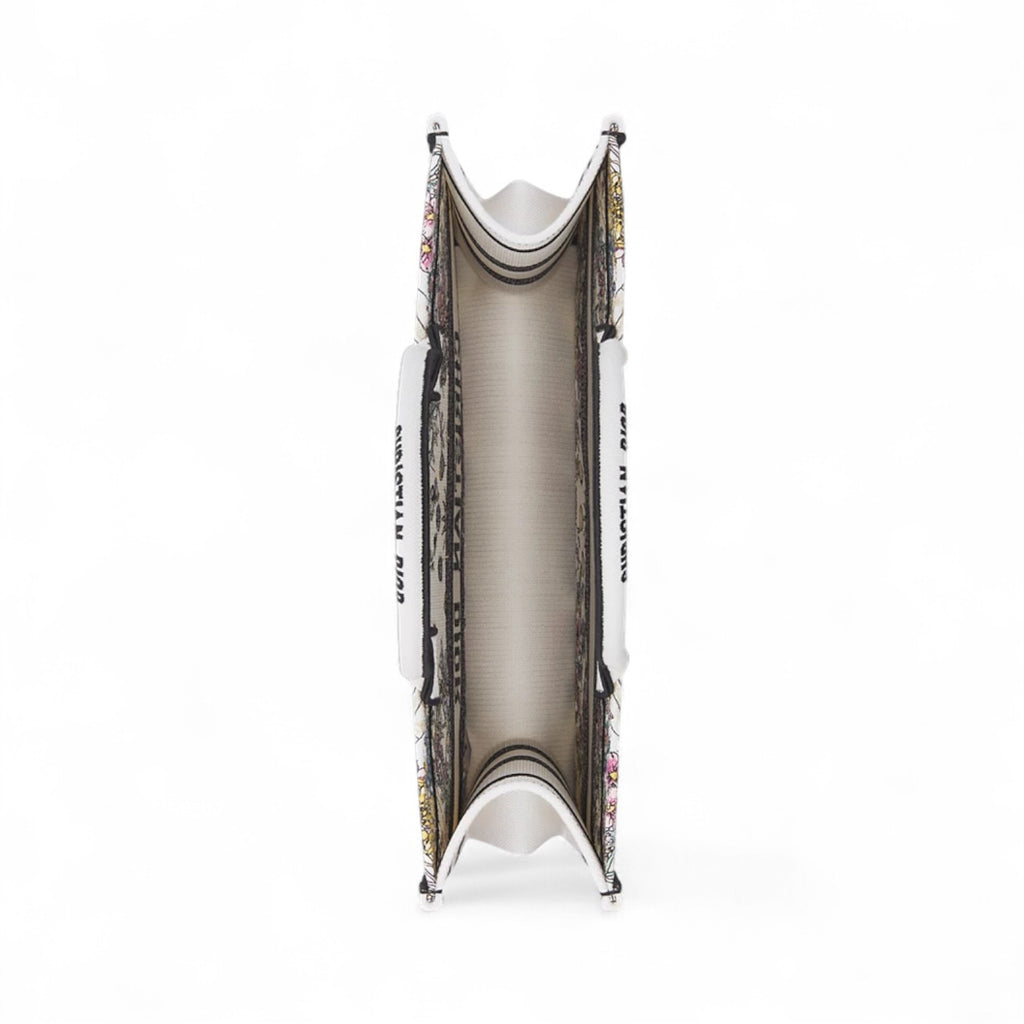حقيبة ديور زودياك مطرزة بزهور الأبراج للنساء باللون الأبيض، كبيرة الحجم