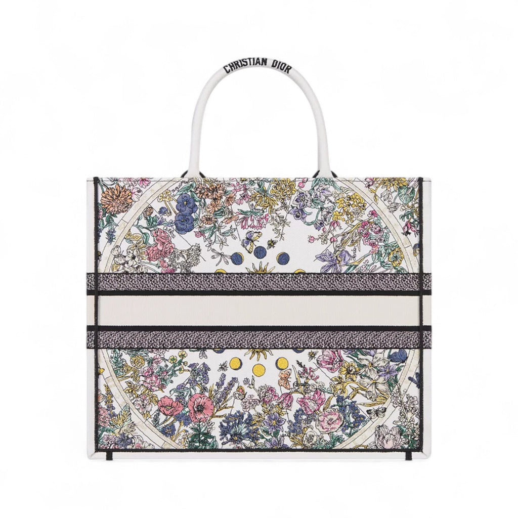 حقيبة ديور بوك توت، جزء من مجموعة ديور لاكي، تصميم كلاسيكي ومبتكر من تصميم ماريا غراتسيا كيوري، المديرة الإبداعية لكريستيان ديور. صُممت الحقيبة لحمل جميع الضروريات اليومية، وهي مطرزة بالكامل بنقش زهور ديور زودياك البيضاء متعددة الألوان، مع تمثيل الأبراج الفلكية الاثني عشر كباقة من الزهور الموسمية تروي قصة فريدة. تُجسّد هذه الحقيبة الكبيرة، المزينة بتوقيع كريستيان ديور باريس على واجهتها، براعة الدار، ويمكن حملها يدويًا. كما يمكن تنسيقها مع إبداعات ديور لاكي الأخرى.