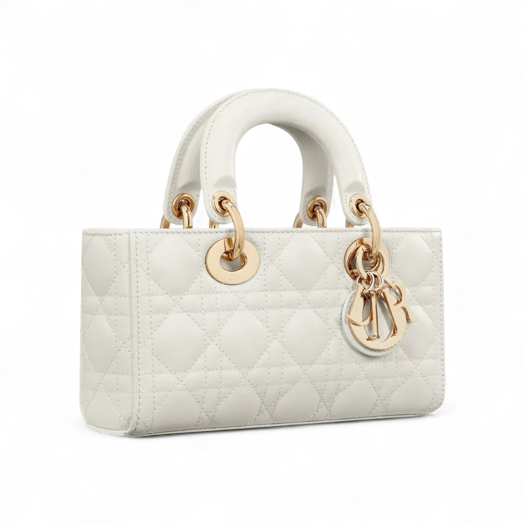 حقيبة ديور كاناج ميني ليدي دي-جوي بيضاء من جلد الحمل