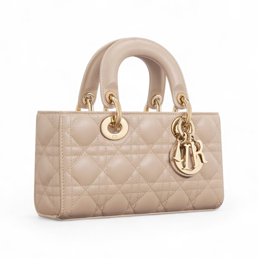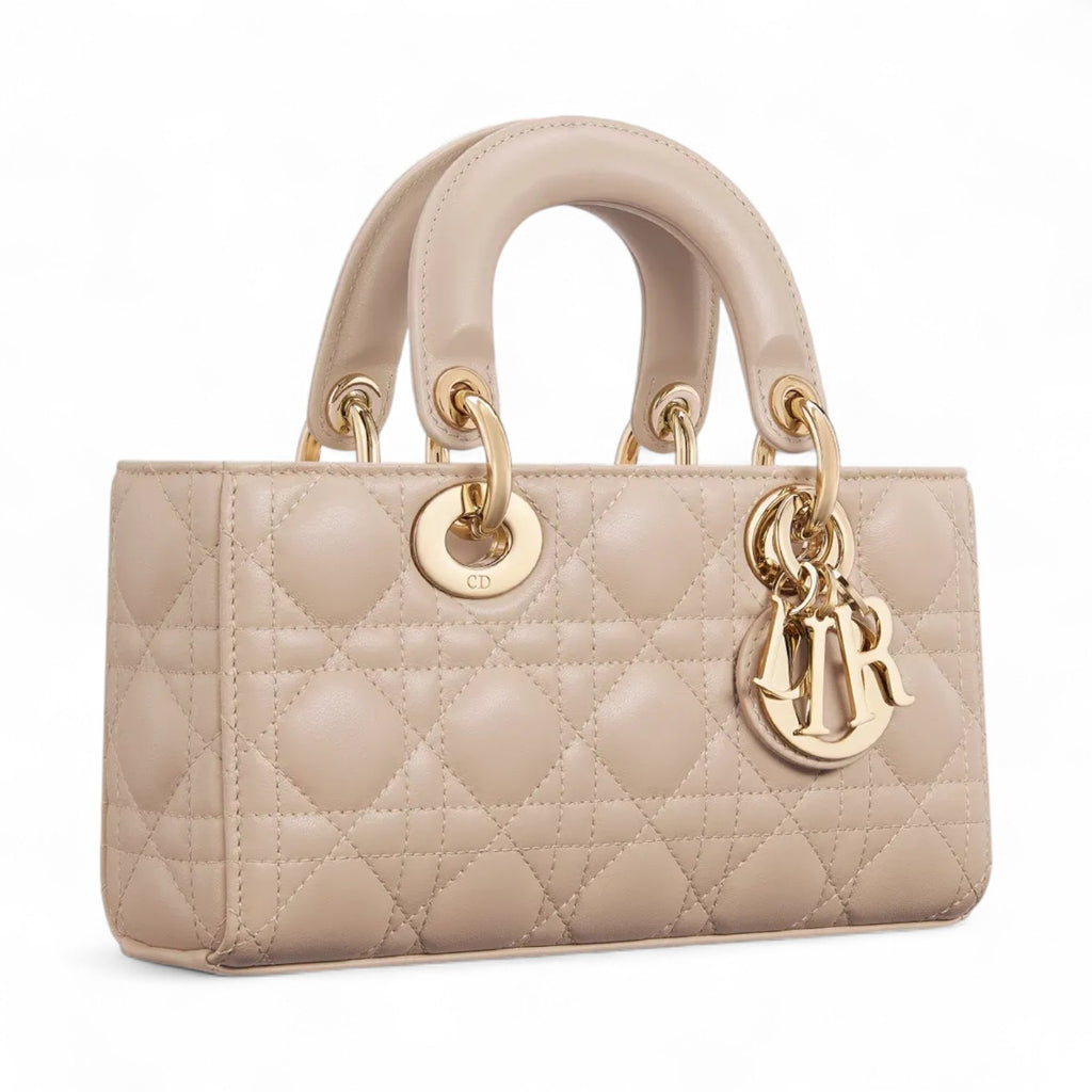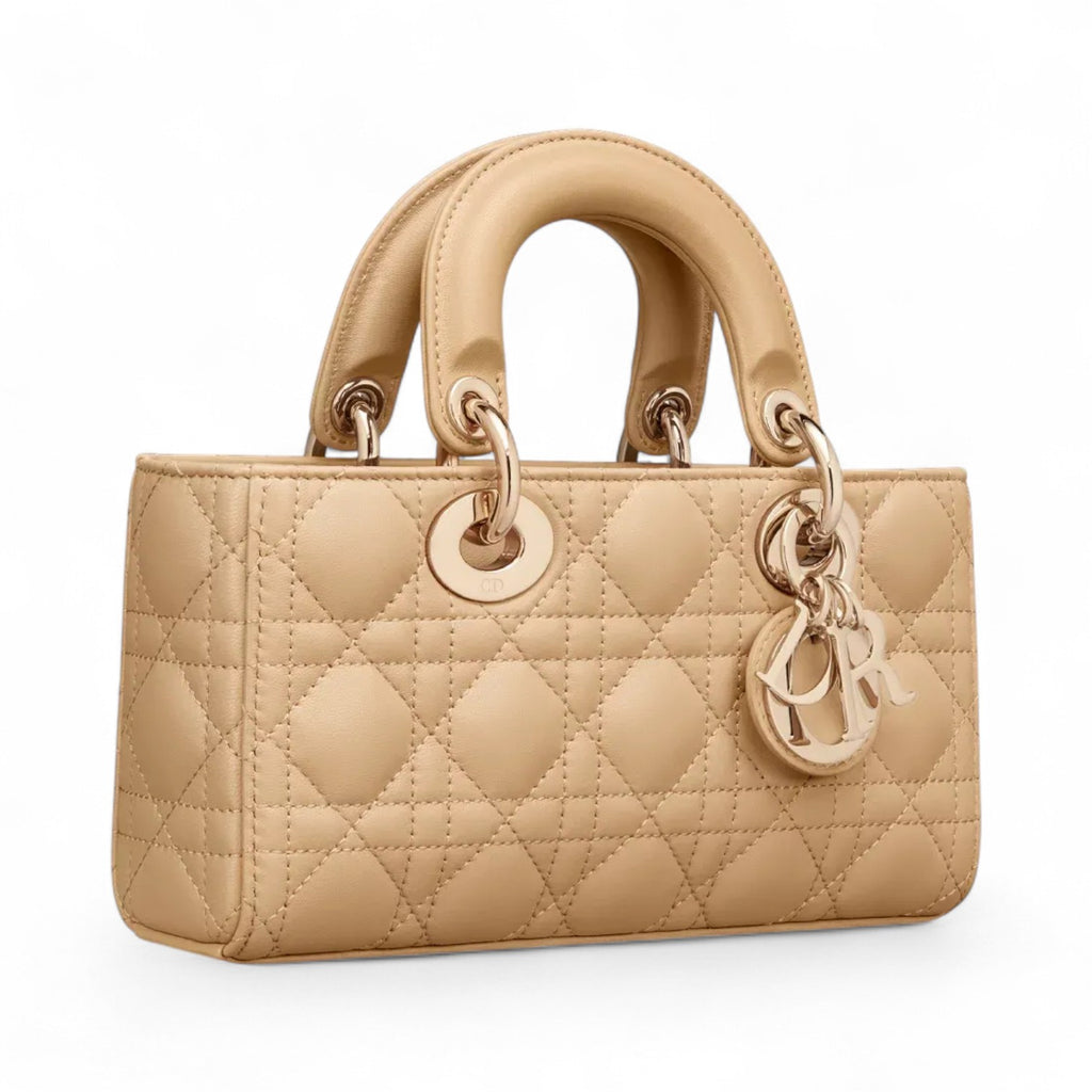 حقيبة DIOR CANNAGE LAMBSKIN الصغيرة للسيدات D-JOY باللون البيج