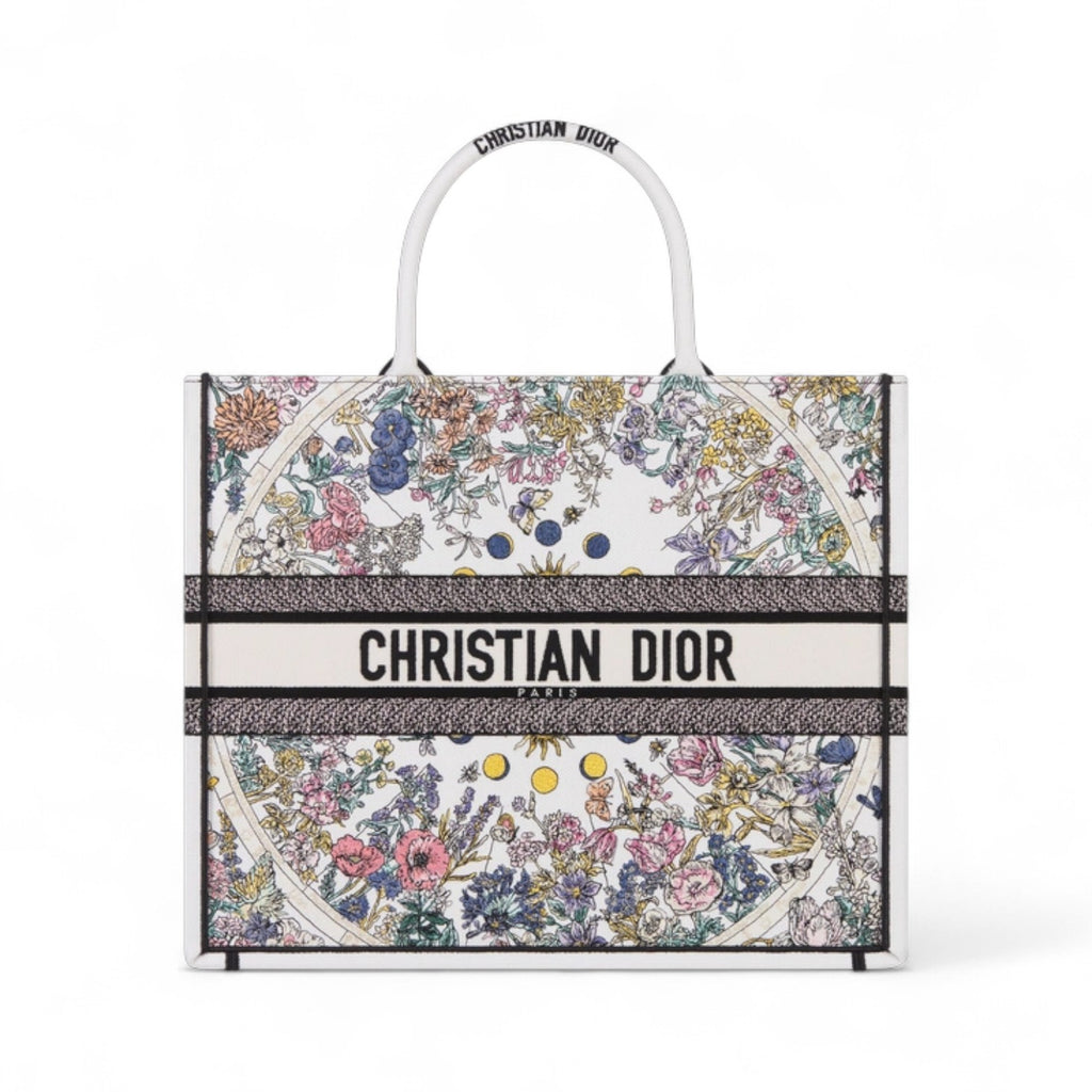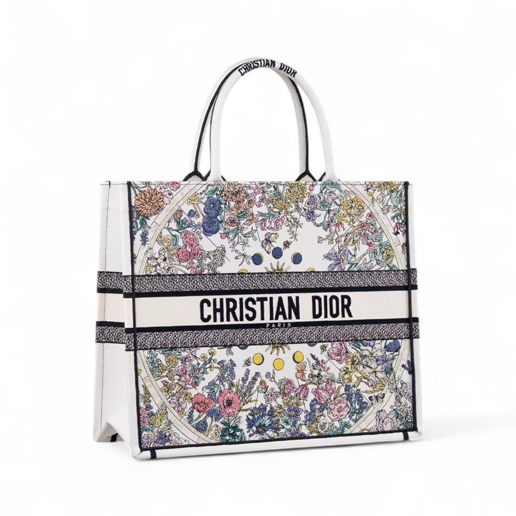 حقيبة ديور زودياك مطرزة بزهور الأبراج للنساء باللون الأبيض، كبيرة الحجم