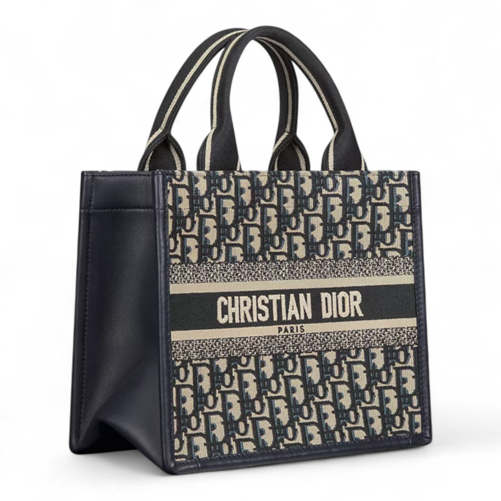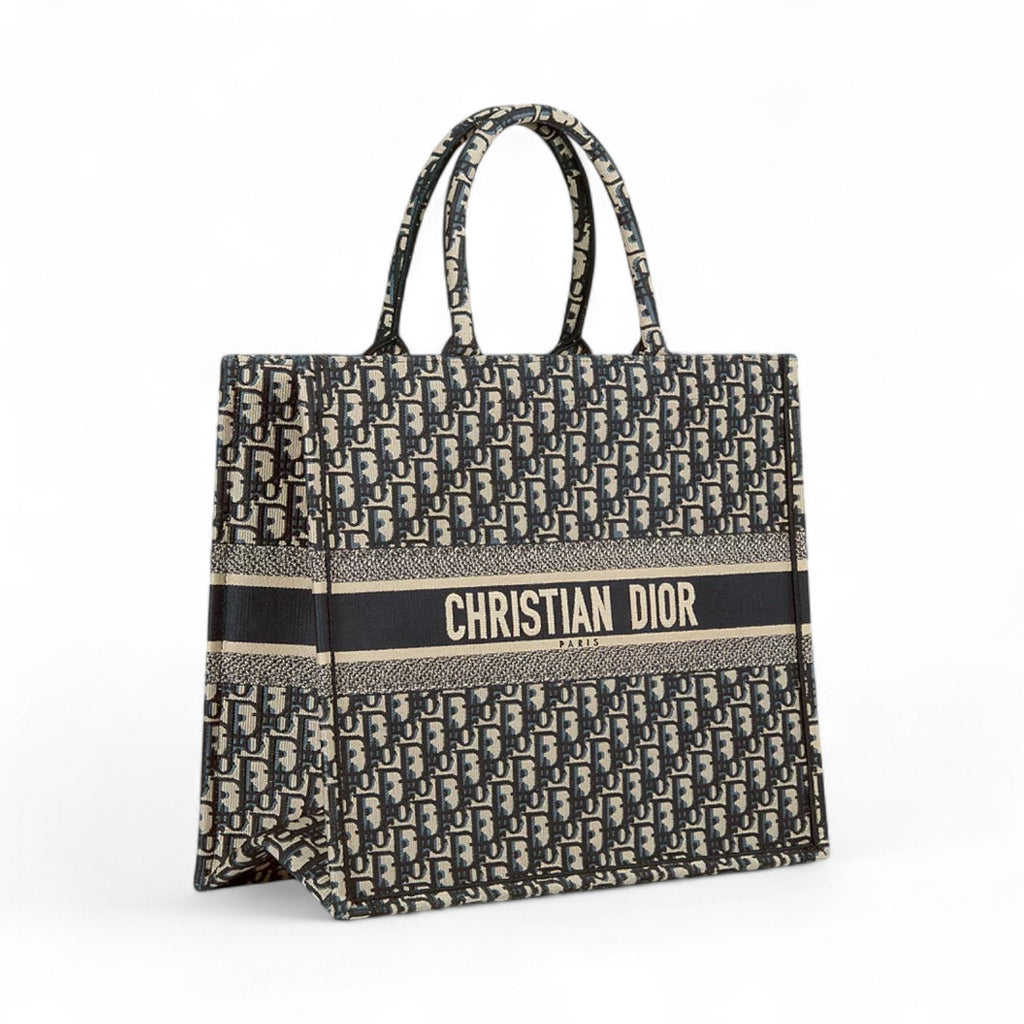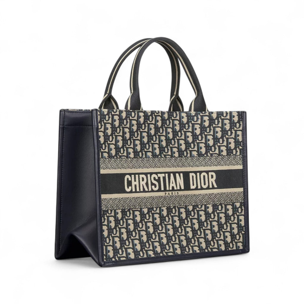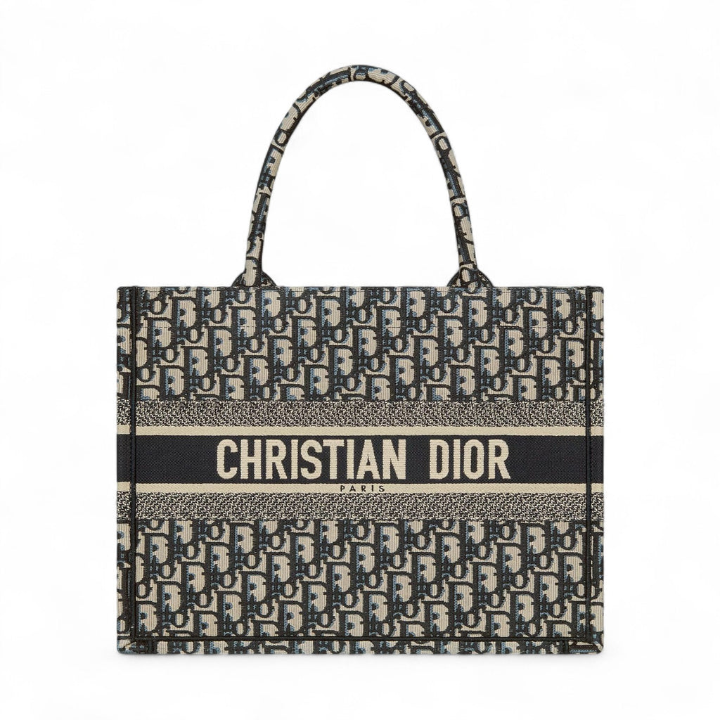 حقيبة ديور النسائية المطرزة بشكل كتاب باللون الأزرق متوسطة الحجم