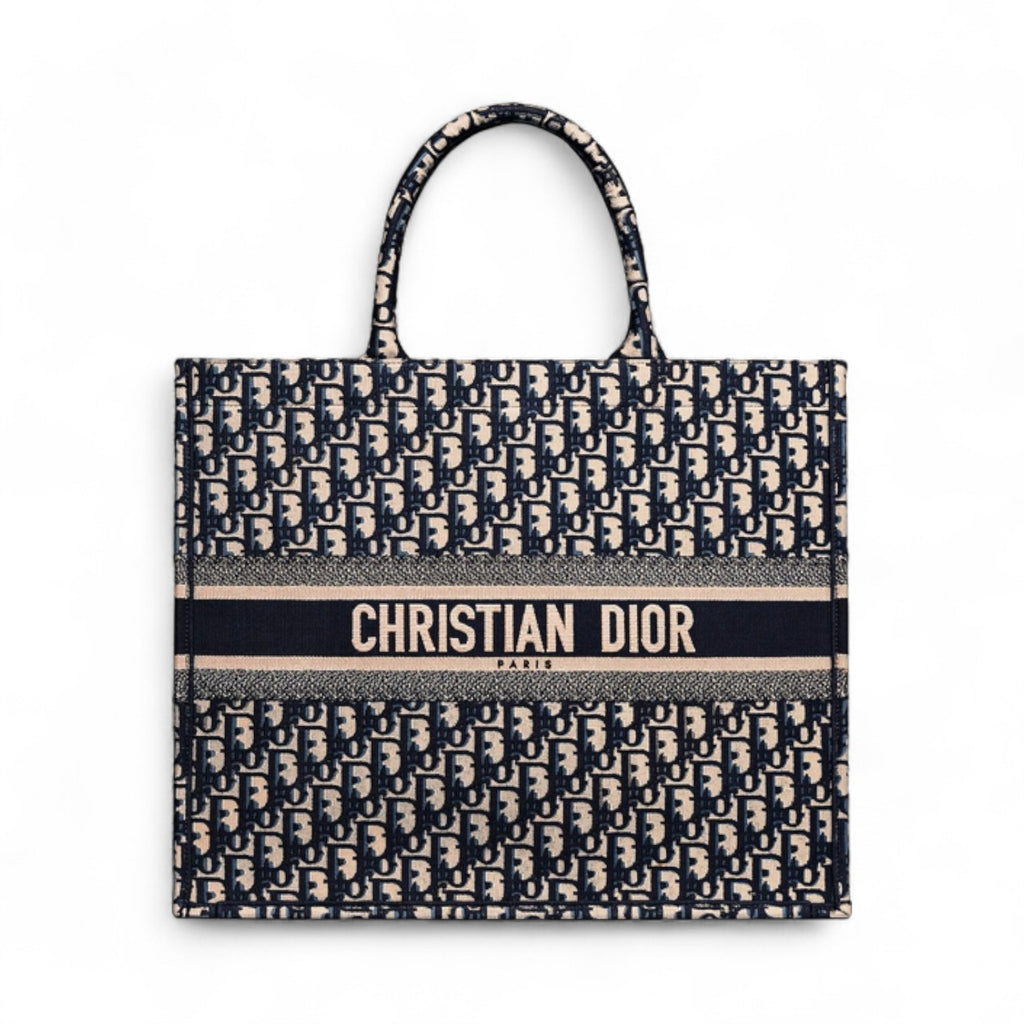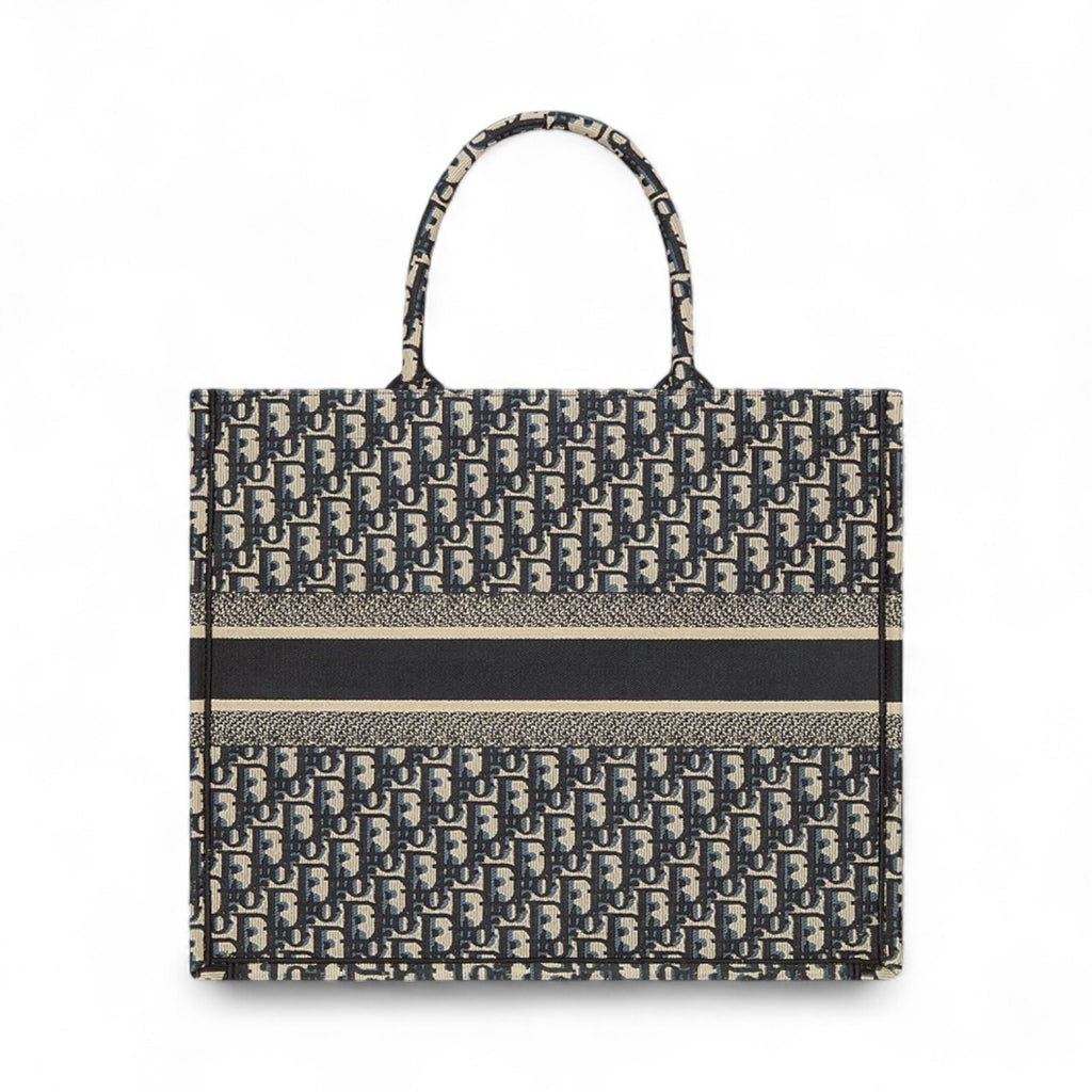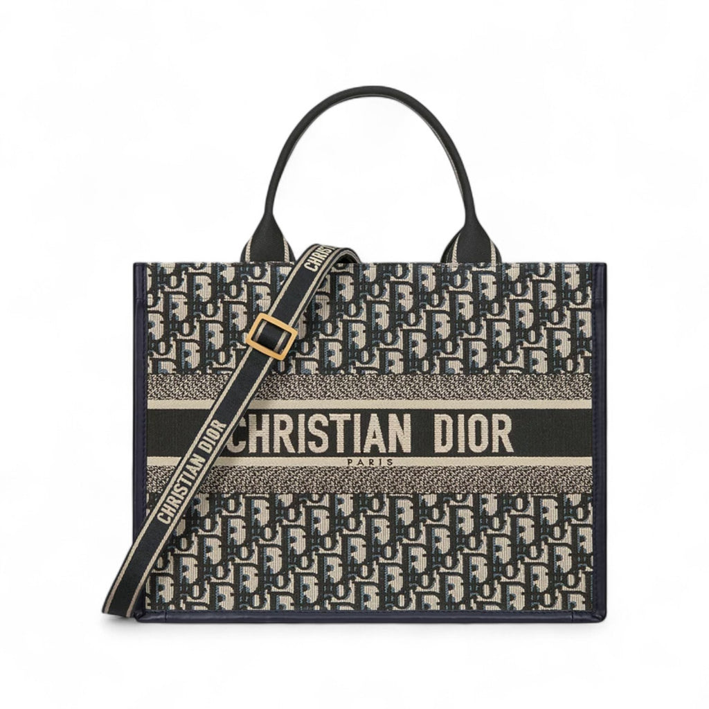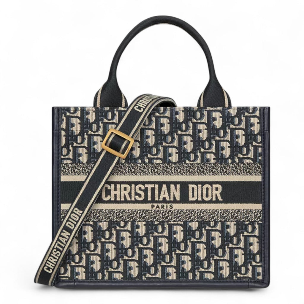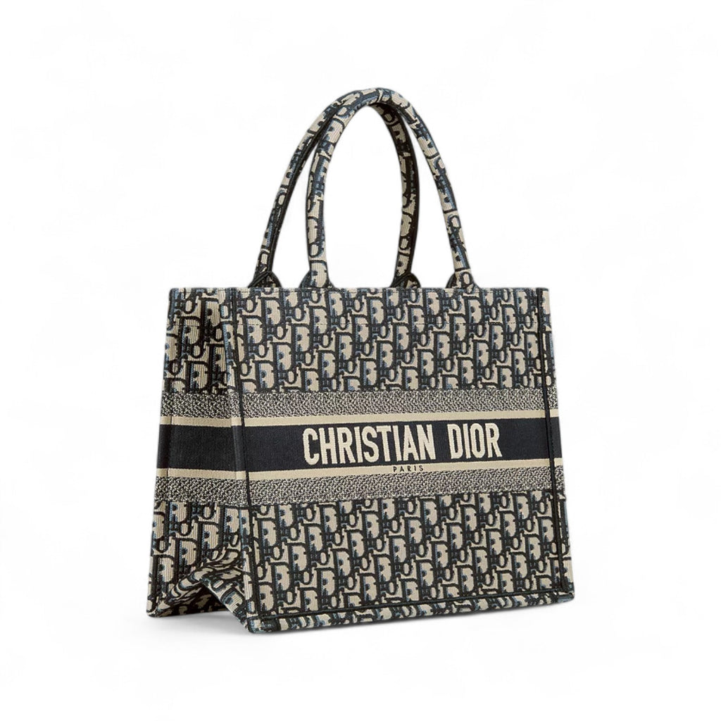 حقيبة ديور النسائية المطرزة بشكل كتاب باللون الأزرق متوسطة الحجم