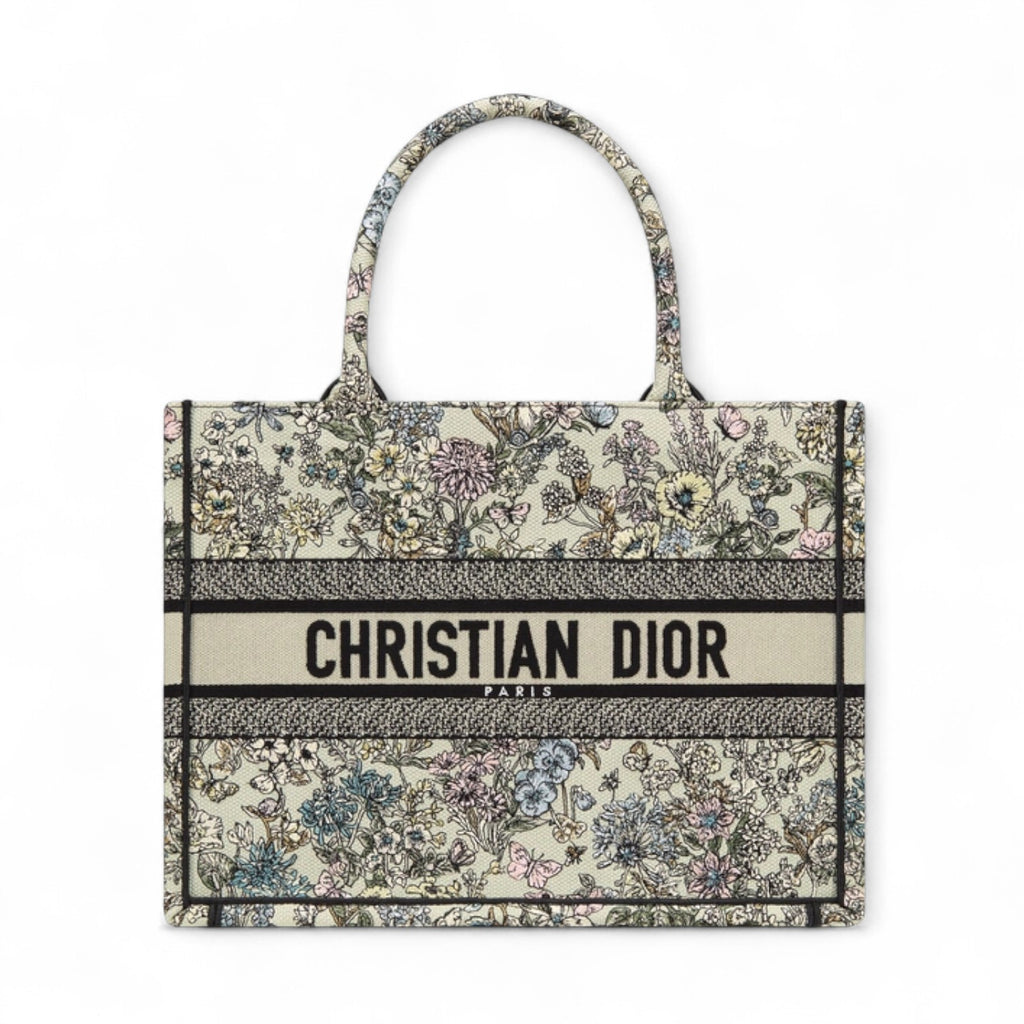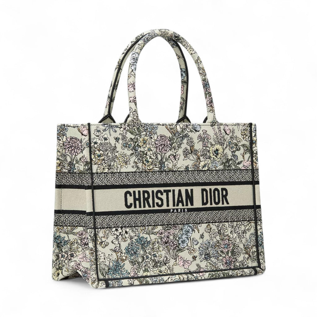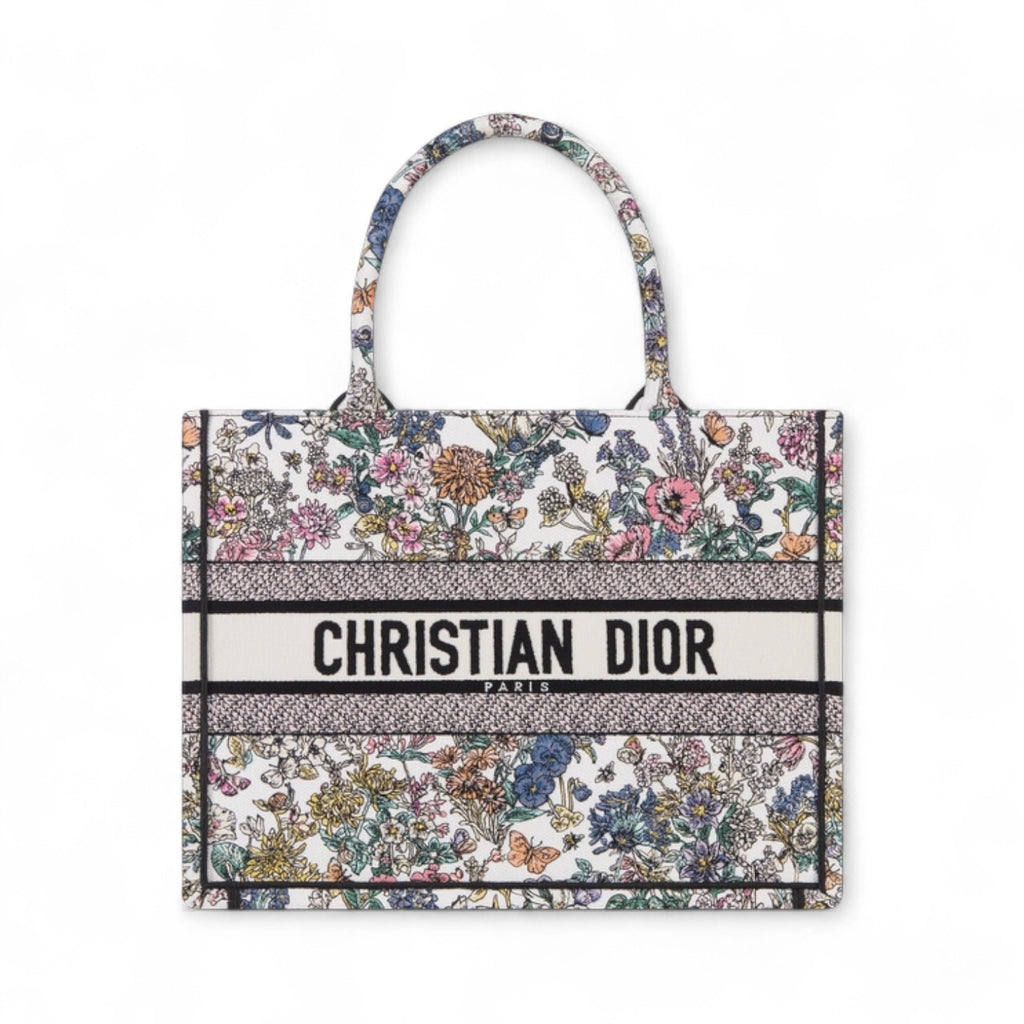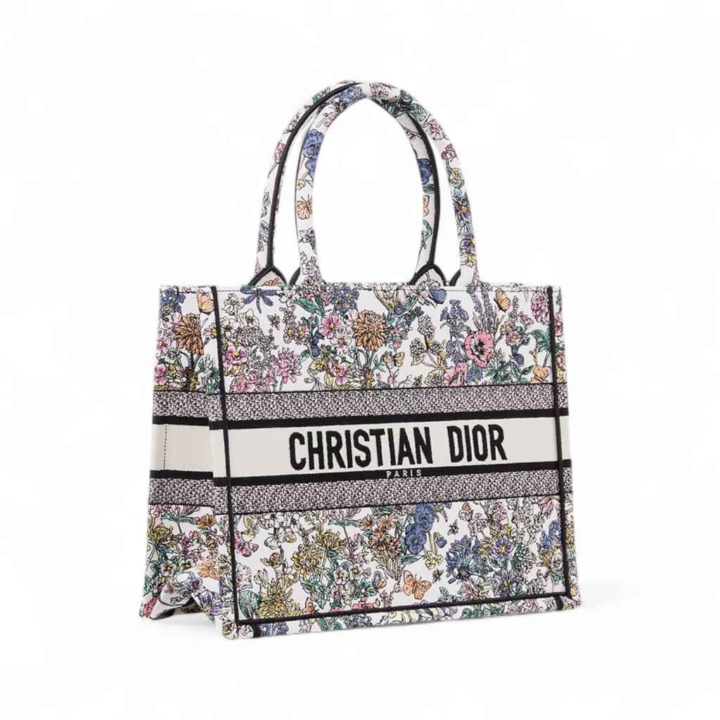 حقيبة ديور النسائية البيضاء متوسطة الحجم والمطرزة بالكامل بالزهور