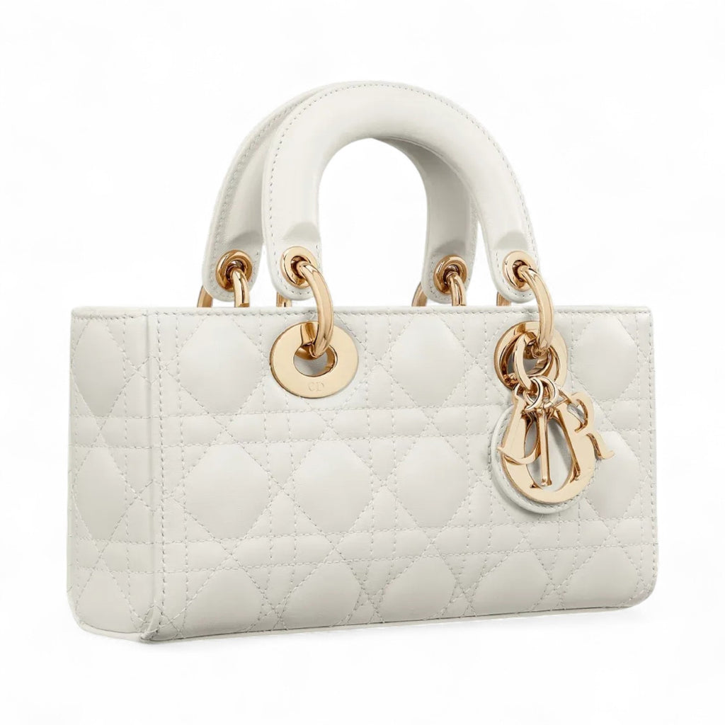 حقيبة ديور كاناج صغيرة من جلد الحمل ليدي دي جوي باللون الأبيض