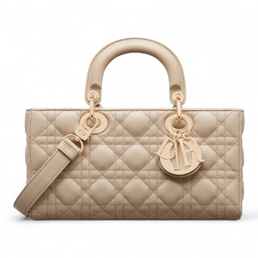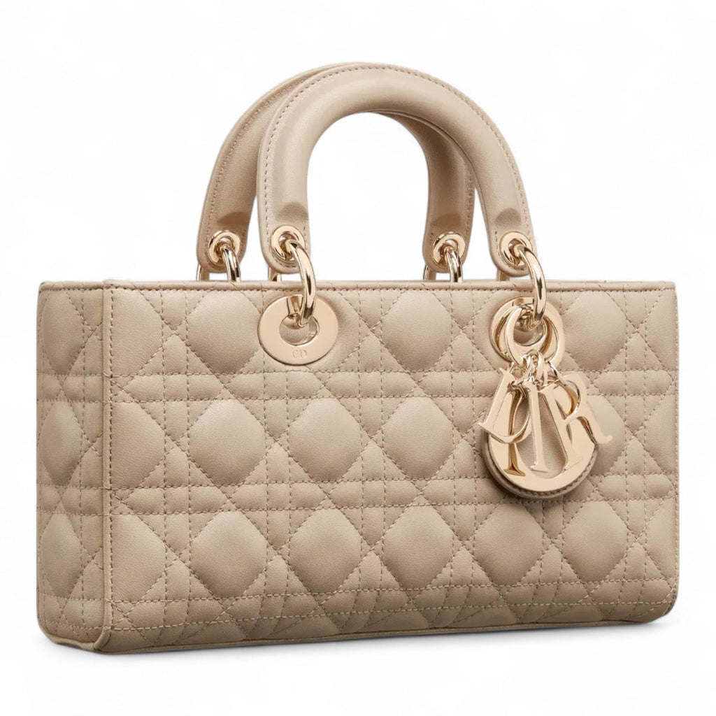 حقيبة ديور كاناج جلد حمل متوسطة الحجم للسيدات D-JOY بيج