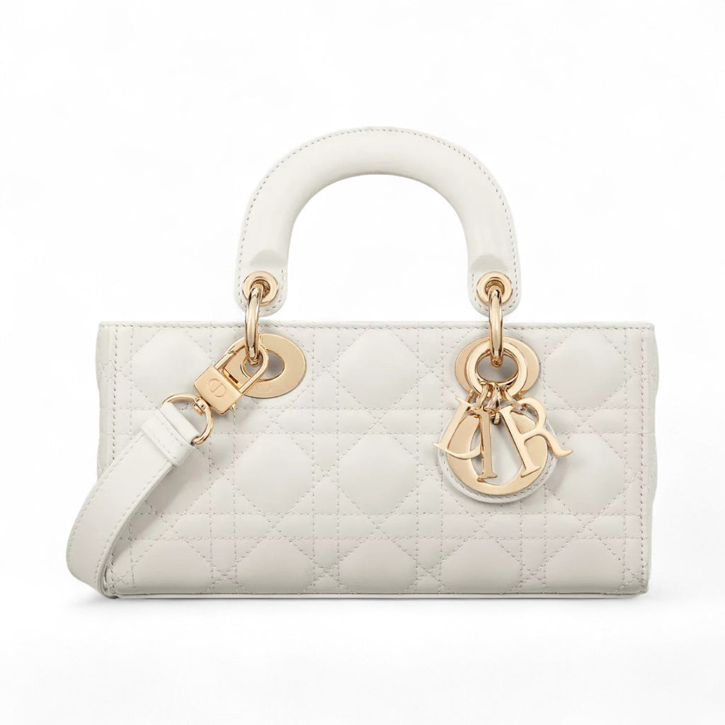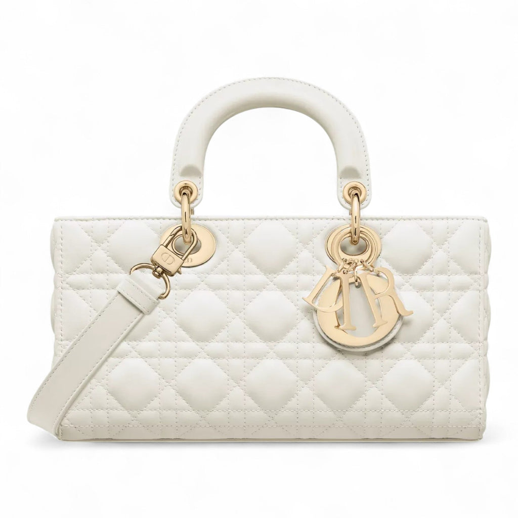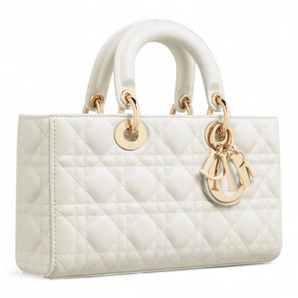 حقيبة ديور كاناج متوسطة الحجم من جلد الحمل ليدي دي جوي باللون الأبيض
