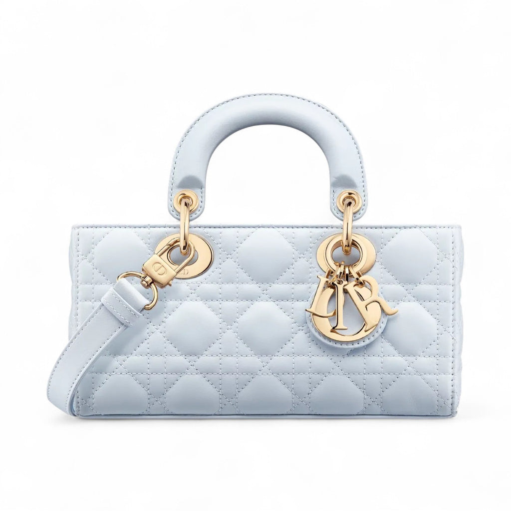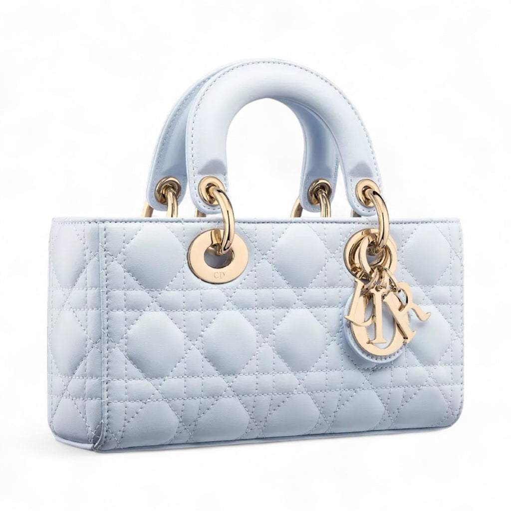 حقيبة ديور كاناج صغيرة من جلد الحمل ليدي دي جوي باللون الأزرق الفاتح
