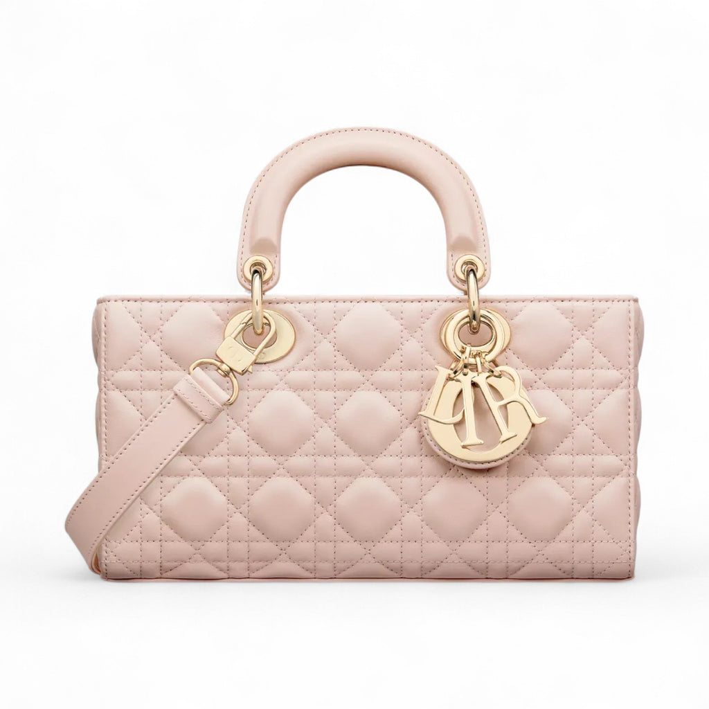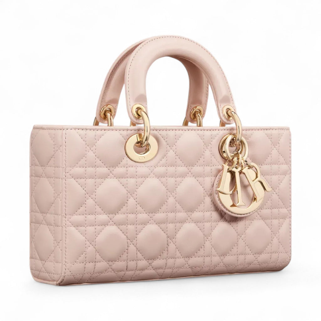 حقيبة ديور كاناج من جلد الحمل متوسطة الحجم ليدي دي جوي باللون الوردي