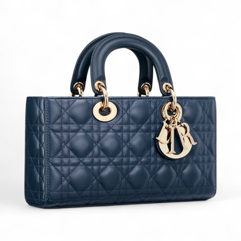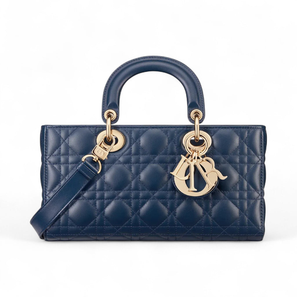 حقيبة ديور كاناج متوسطة الحجم من جلد الحمل ليدي دي جوي باللون الأزرق
