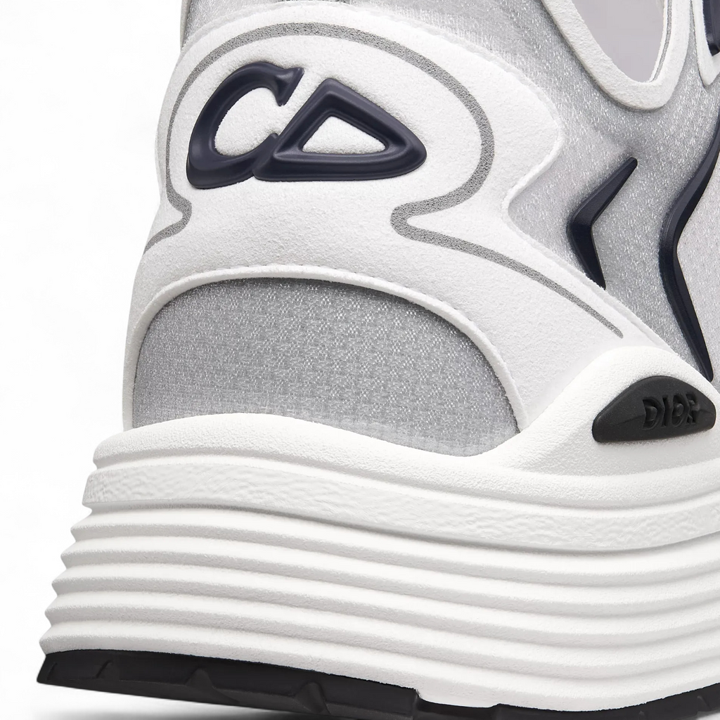 حذاء B30 Countdown Tech الرياضي، الجديد لربيع 2026، يتميز بتصميمه الرياضي الذي يجمع بين رموز الأزياء الراقية والأداء التقني. مستوحىً مباشرةً من عالم الجري العصري، صُنع هذا الحذاء الرياضي فائق الخفة من نايلون N3O الأبيض والرمادي، وهو نسيج تقني متعدد الطبقات شبه شفاف وجيد التهوية. يتميز بأجزاء مطاطية زرقاء داكنة محقونة، بالإضافة إلى شعار CD30 المُعاد تصميمه بأسلوب جرافيكي. كما يتميز بشعاري Dior B30 وCD30 المطاطيين على اللسان والظهر. يضمن النعل المنحوت المصنوع من مزيج من المطاط المرن والإسفنج راحةً مثالية، وهو مزين بتفاصيل مميزة متنوعة. سيُكمل حذاء B30 Countdown Tech الرياضي كلاً من الملابس الرياضية والملابس الكاجوال.
