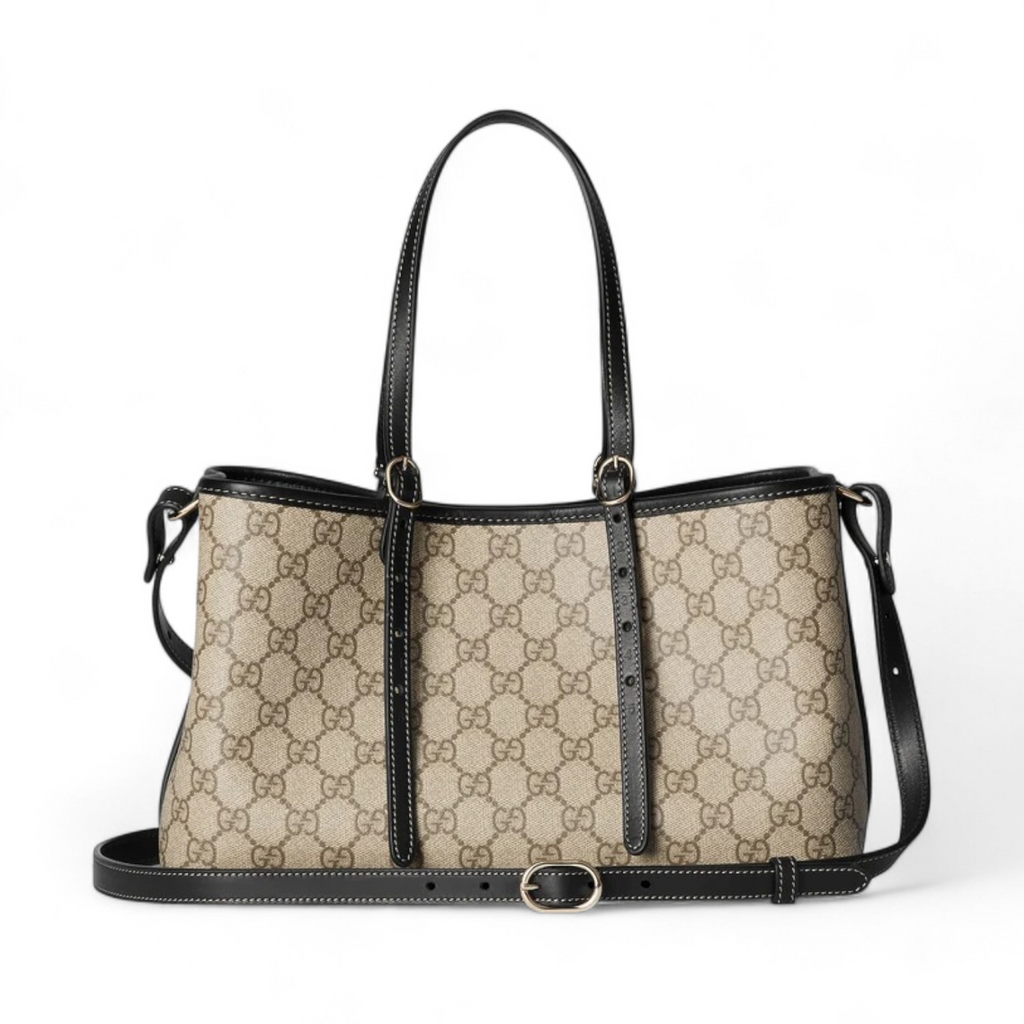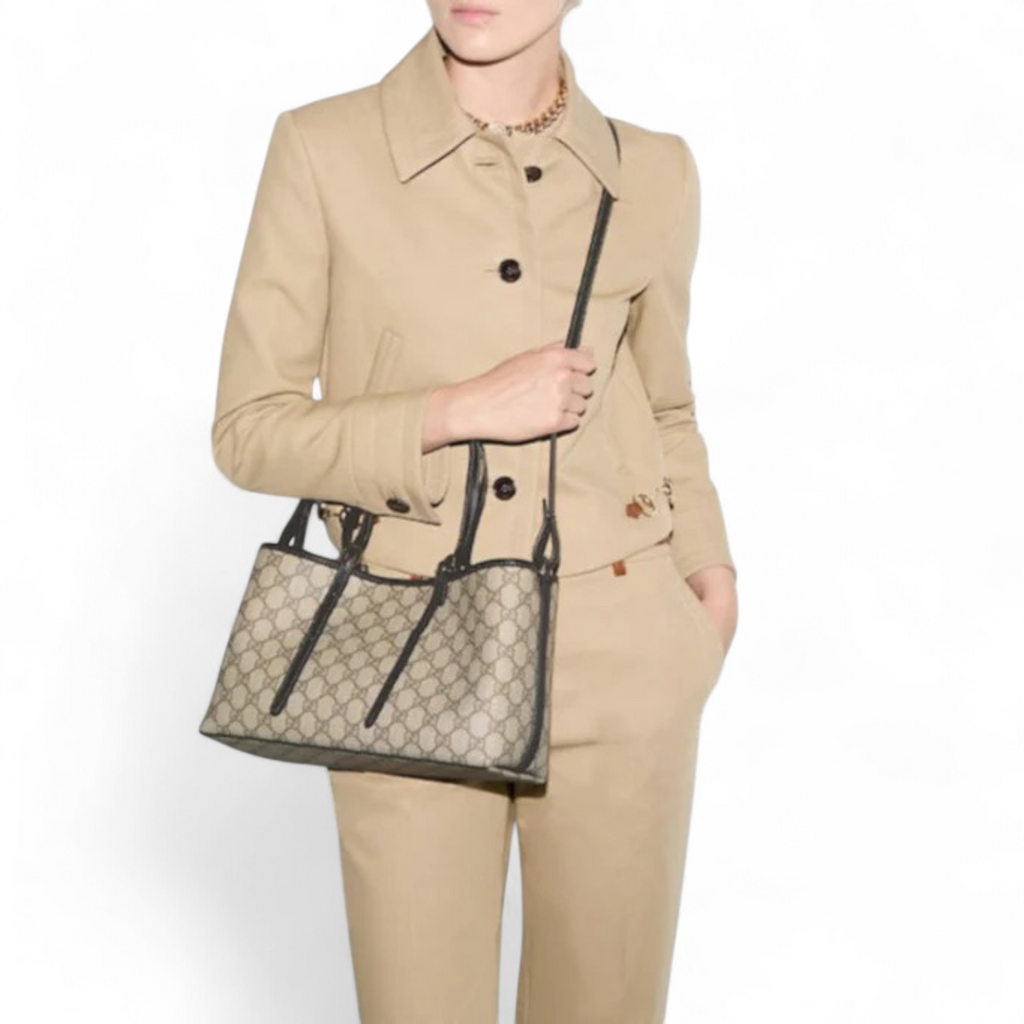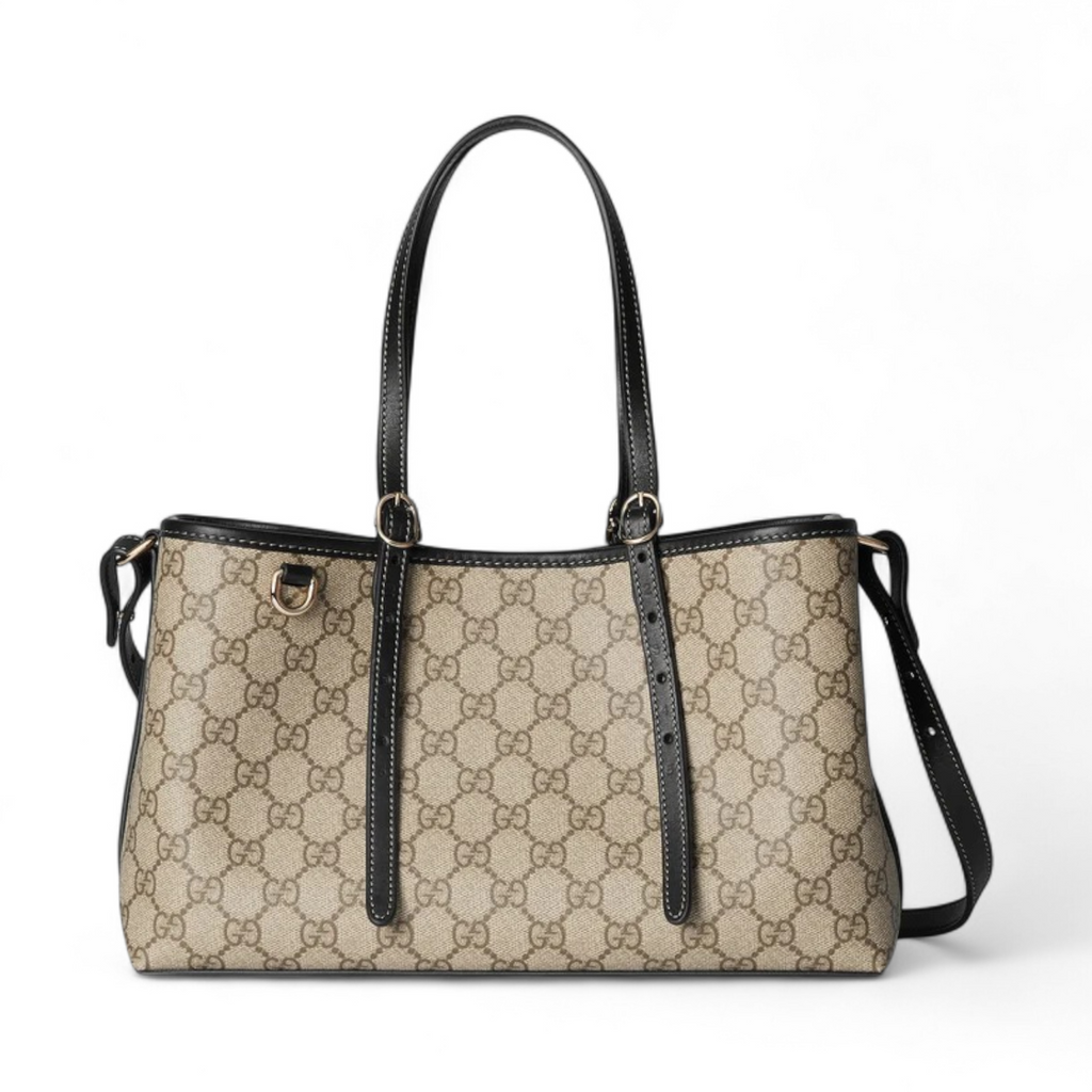 - قماش GG Monogram جديد باللون البيج والبني الداكن