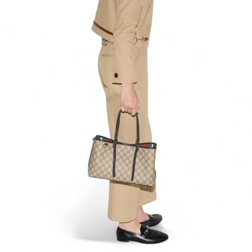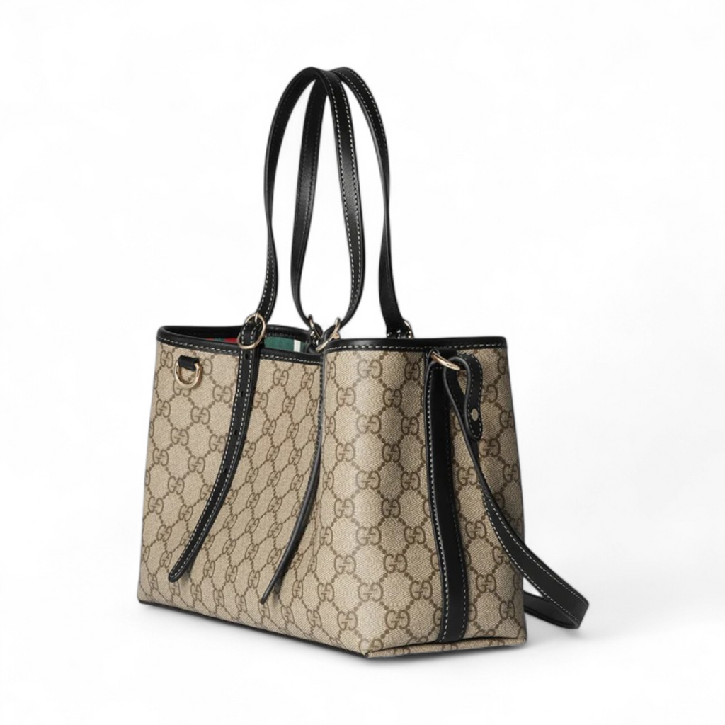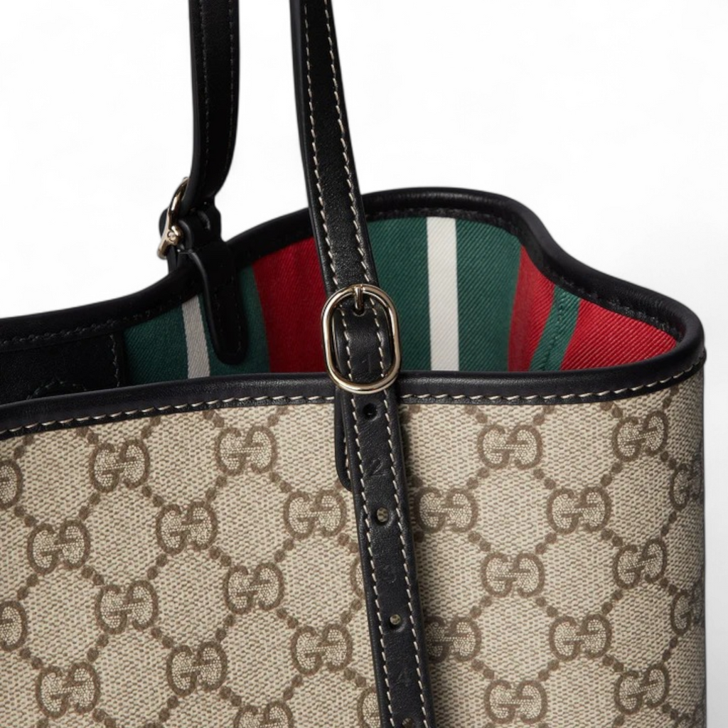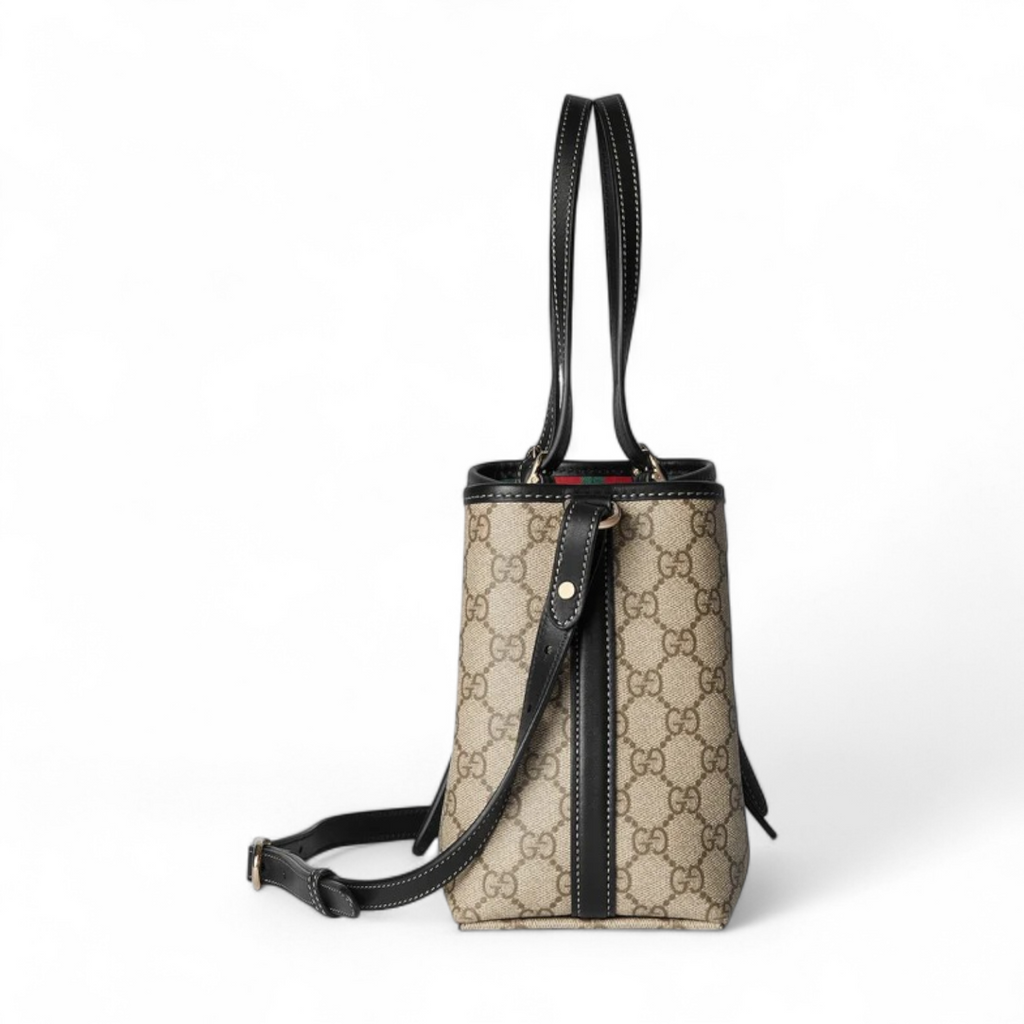 - قماش GG Monogram جديد باللون البيج والبني الداكن