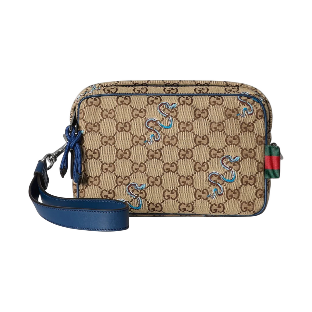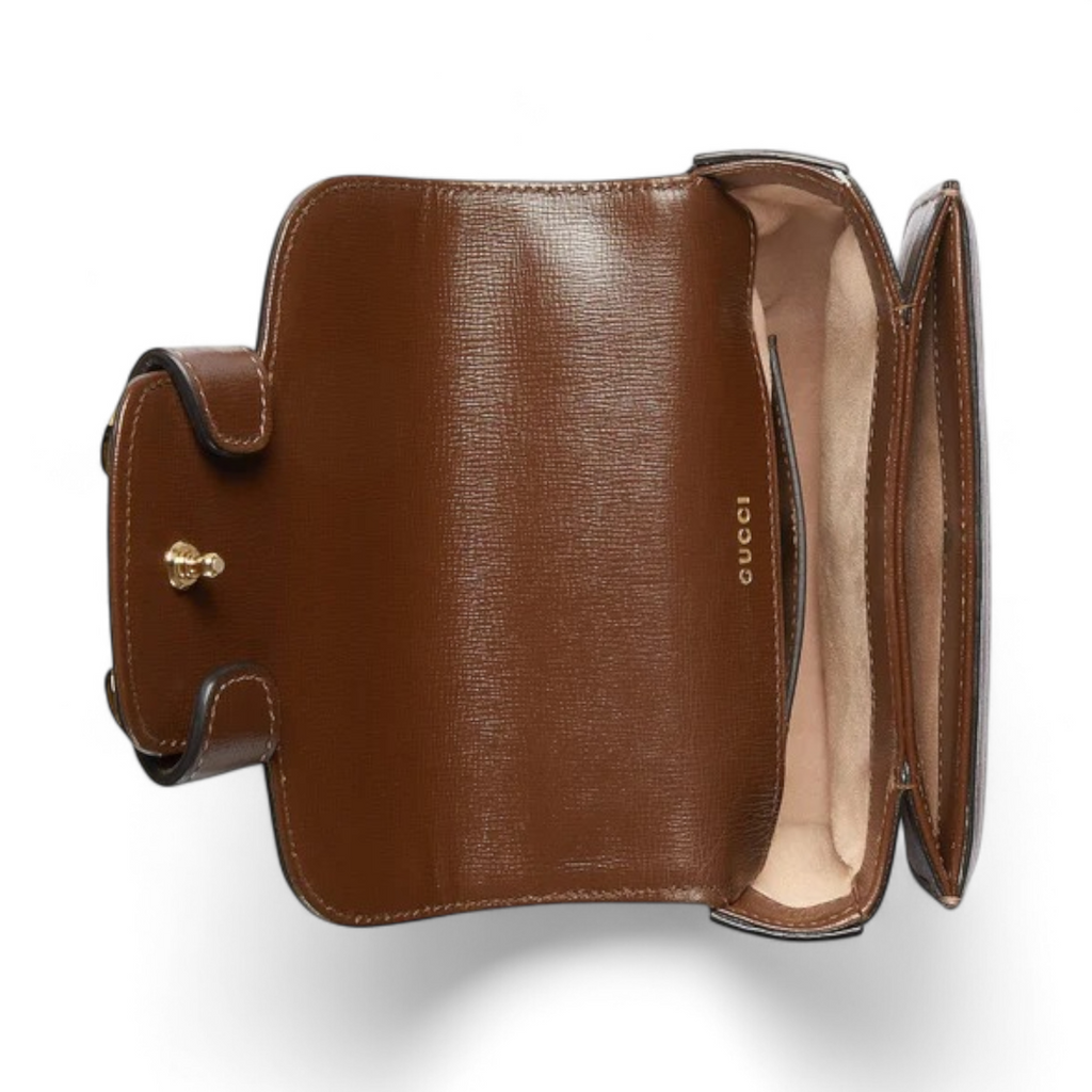 حقيبة كروس بودي صغيرة مطرزة بنقشة جلد الثعبان من جوتشي باللون البني