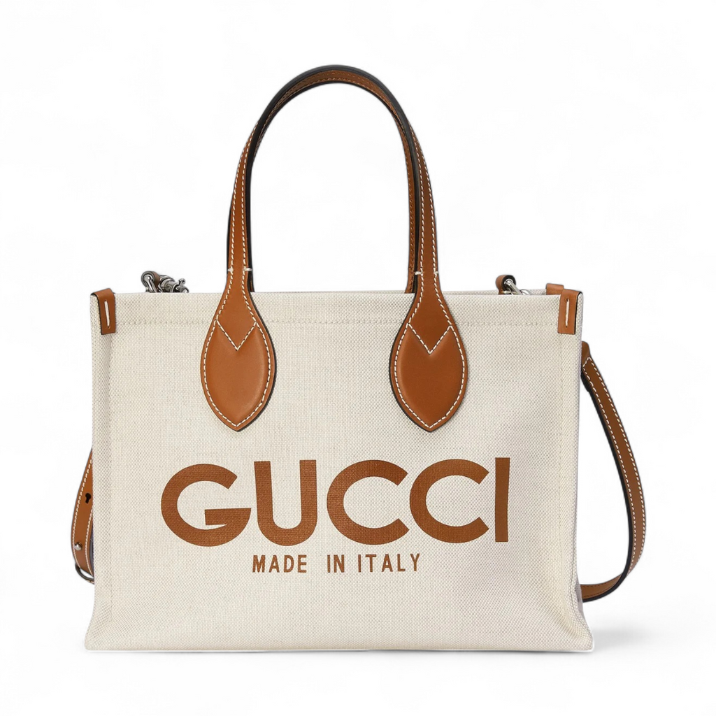 حقيبة غوتشي الصغيرة بطبعة غوتشي باللون البيج