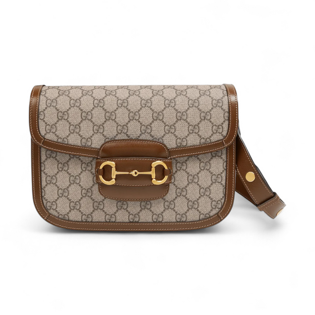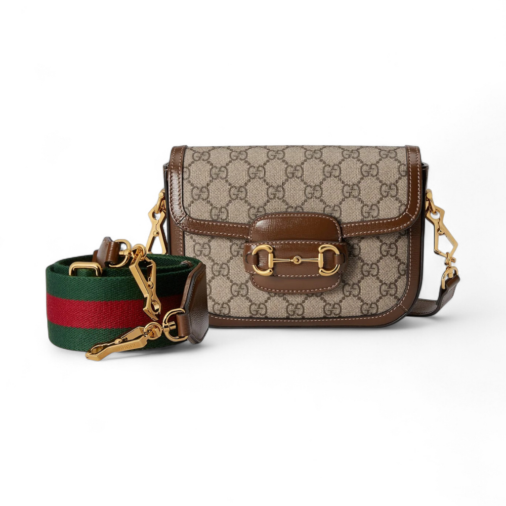 حقيبة كتف صغيرة من مجموعة GUCCI HORSEBIT 1955 باللون البيج