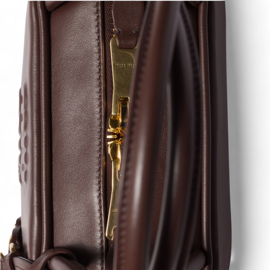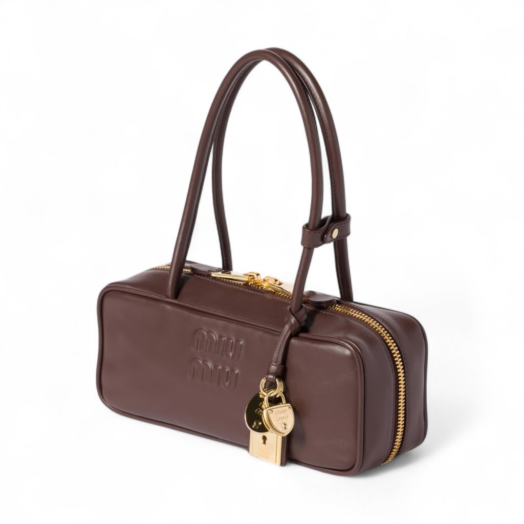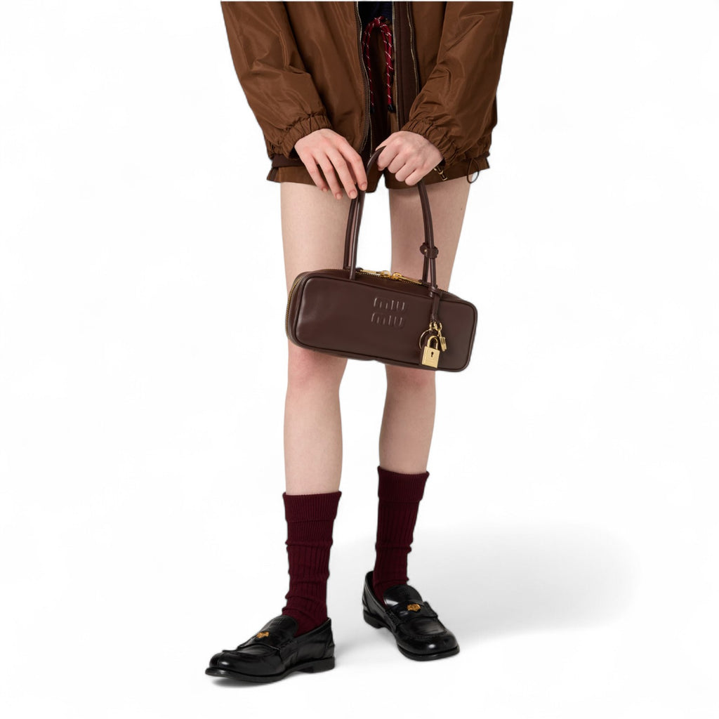 حقيبة ميو ميو الجلدية الصغيرة الجميلة باللون البني
