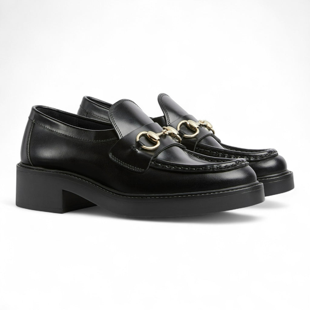 حذاء لوفر أسود للنساء من غوتشي مع شعار حصان -