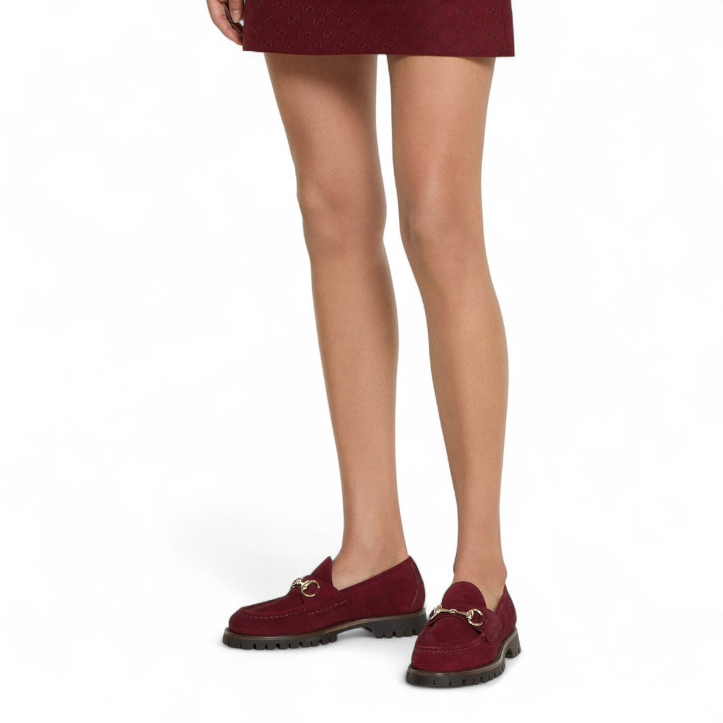 حذاء لوفر نسائي أحمر اللون من غوتشي مع لجام حصان