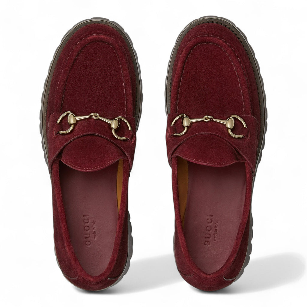حذاء لوفر نسائي أحمر اللون من غوتشي مع لجام حصان -