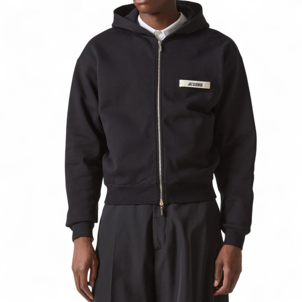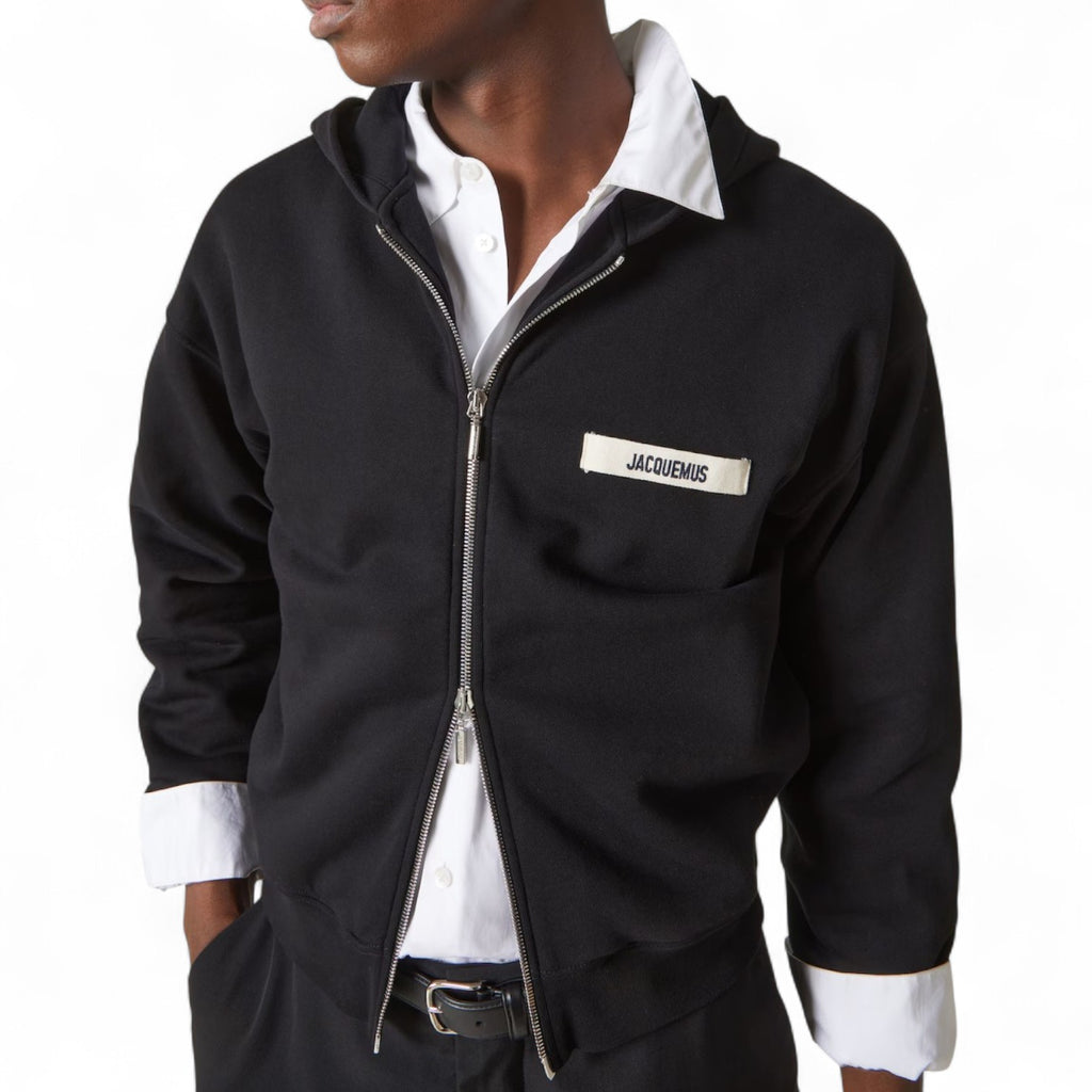 جاكيموس - هودي رجالي أسود بسحاب من القطن الخشن -