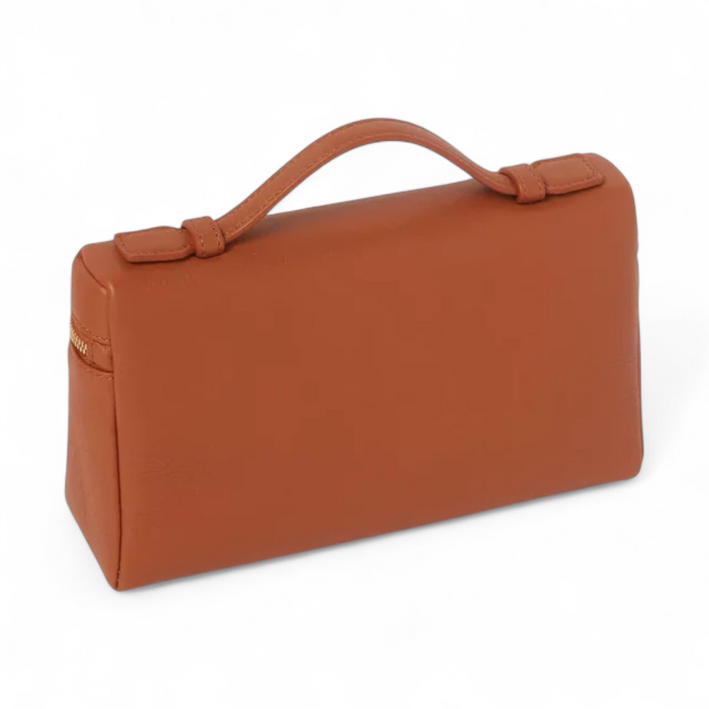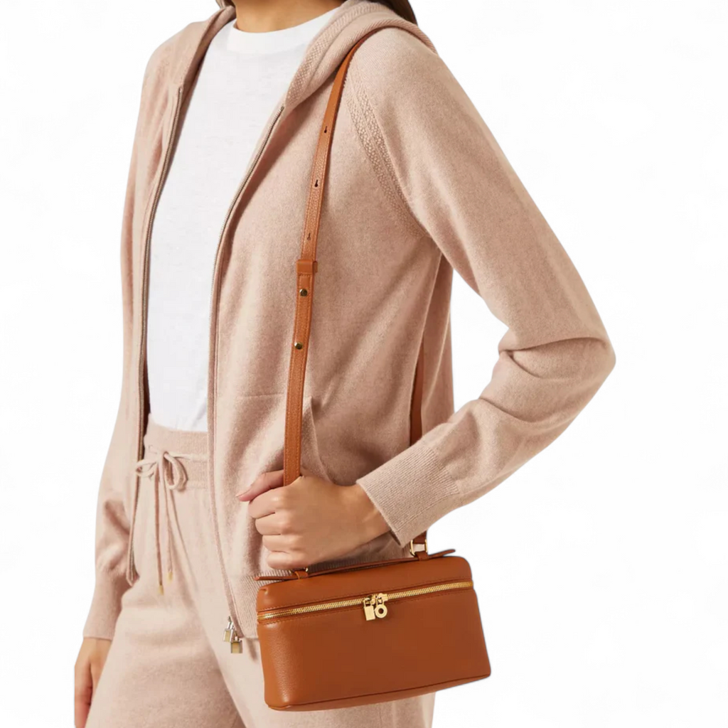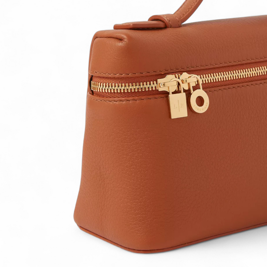 حقيبة لورو بيانا النسائية من جلد العجل المحبب باللون البني مع جيب إضافي L19 - سيتم شحن لمقاس هذا المنتج خلال 15-30 يوم