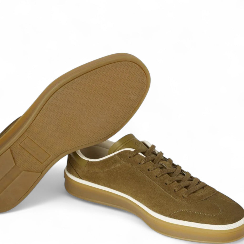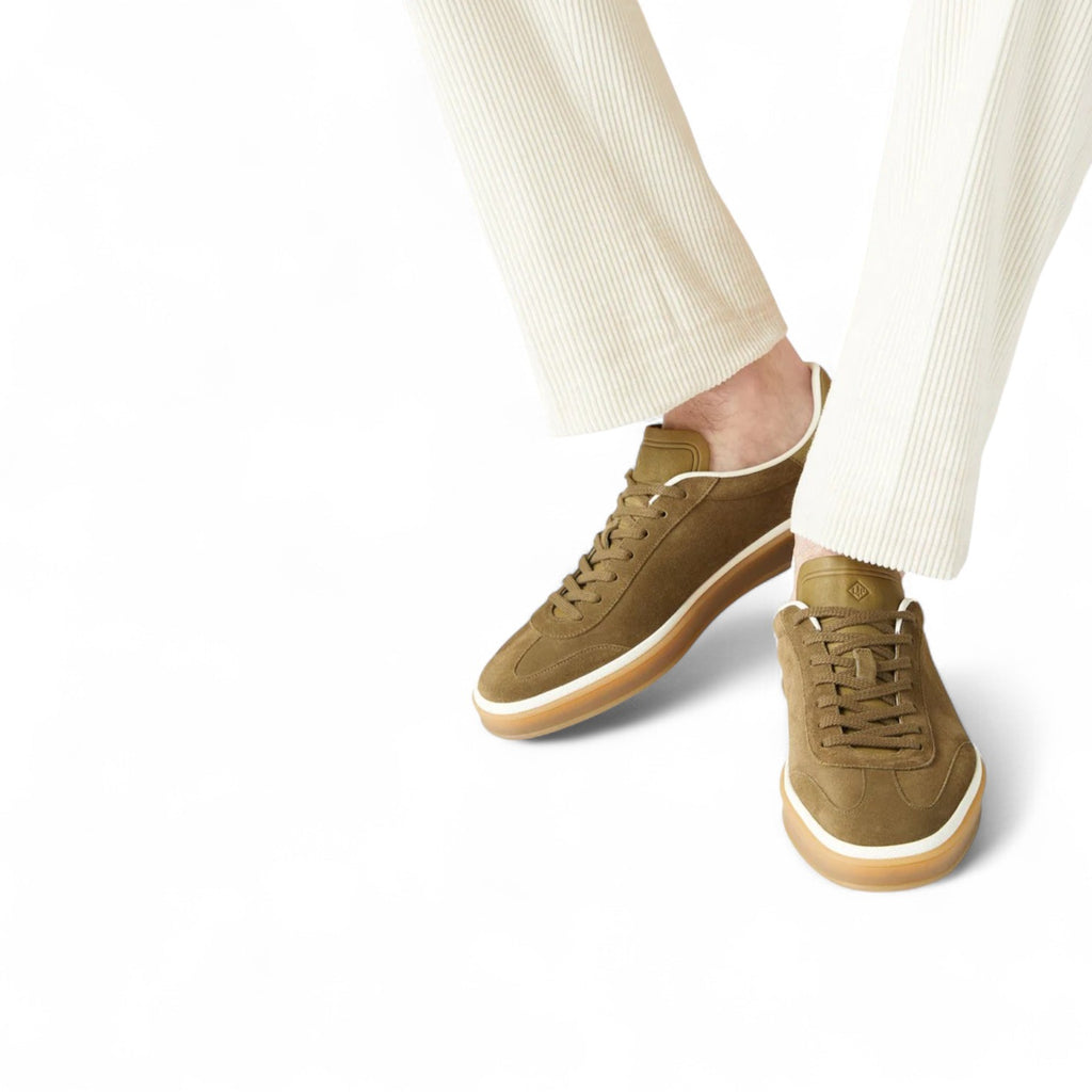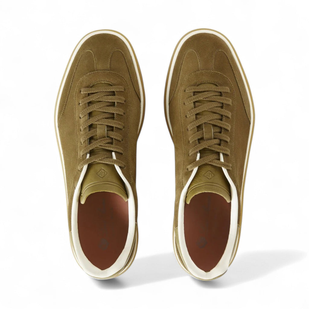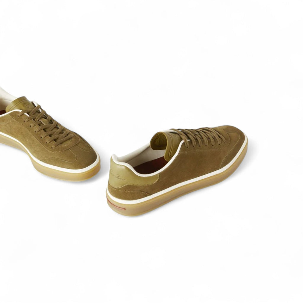 حذاء رياضي LORO PIANA TENNIS WALK من جلد العجل السويدي بفتحة في منتصف الساق باللون الكاكي للرجال - سيتم شحن لمقاس هذا المنتج خلال 15-30 يوم