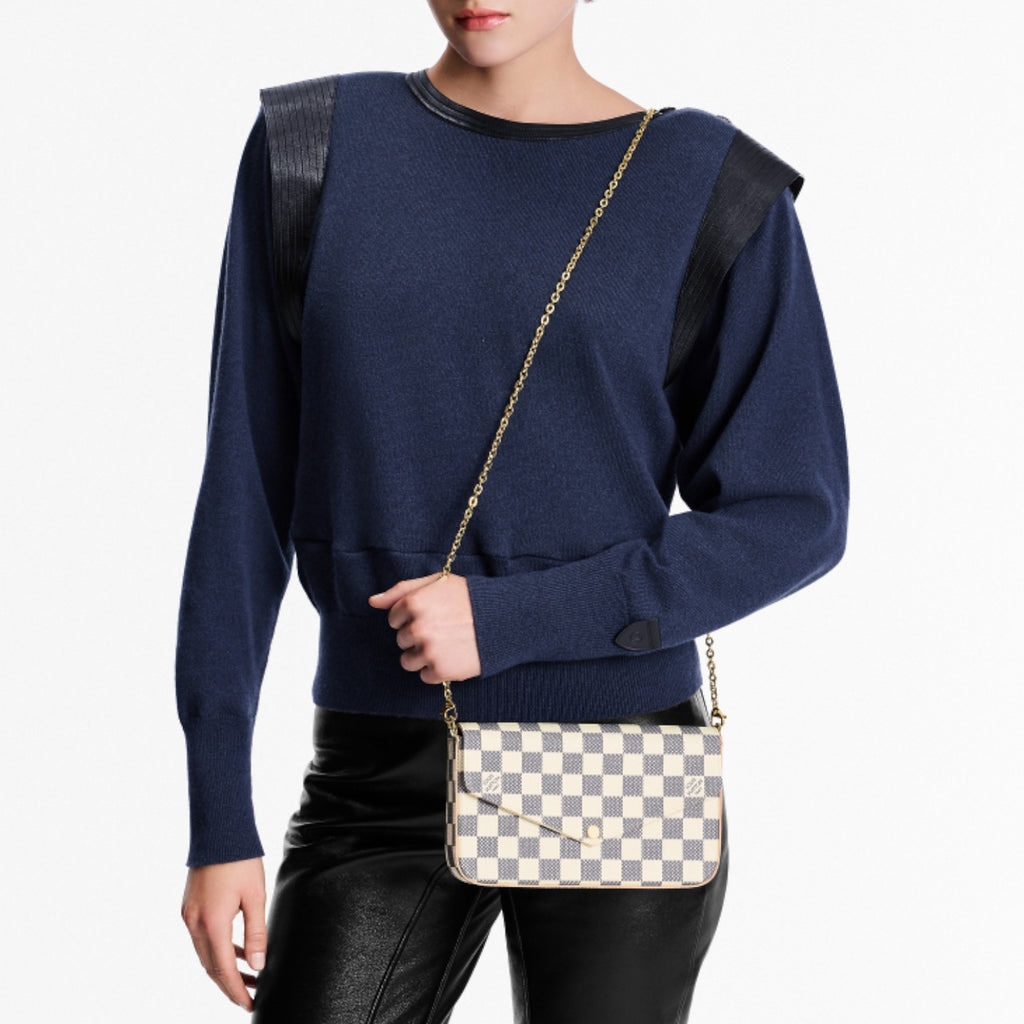 حقيبة لويس فويتون بوشيت فيليسي دامييه أزور قماش بيج للنساء