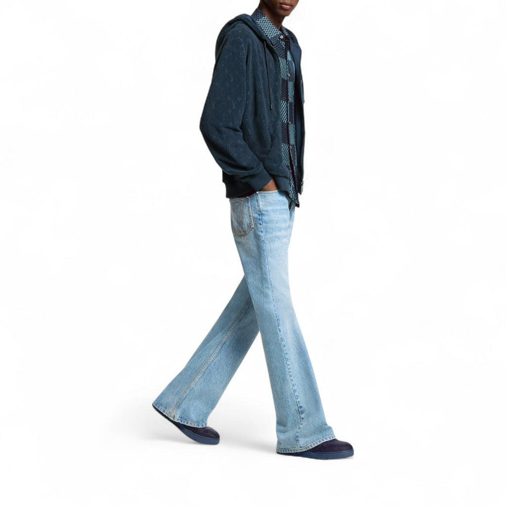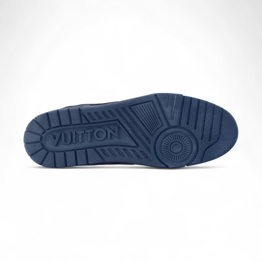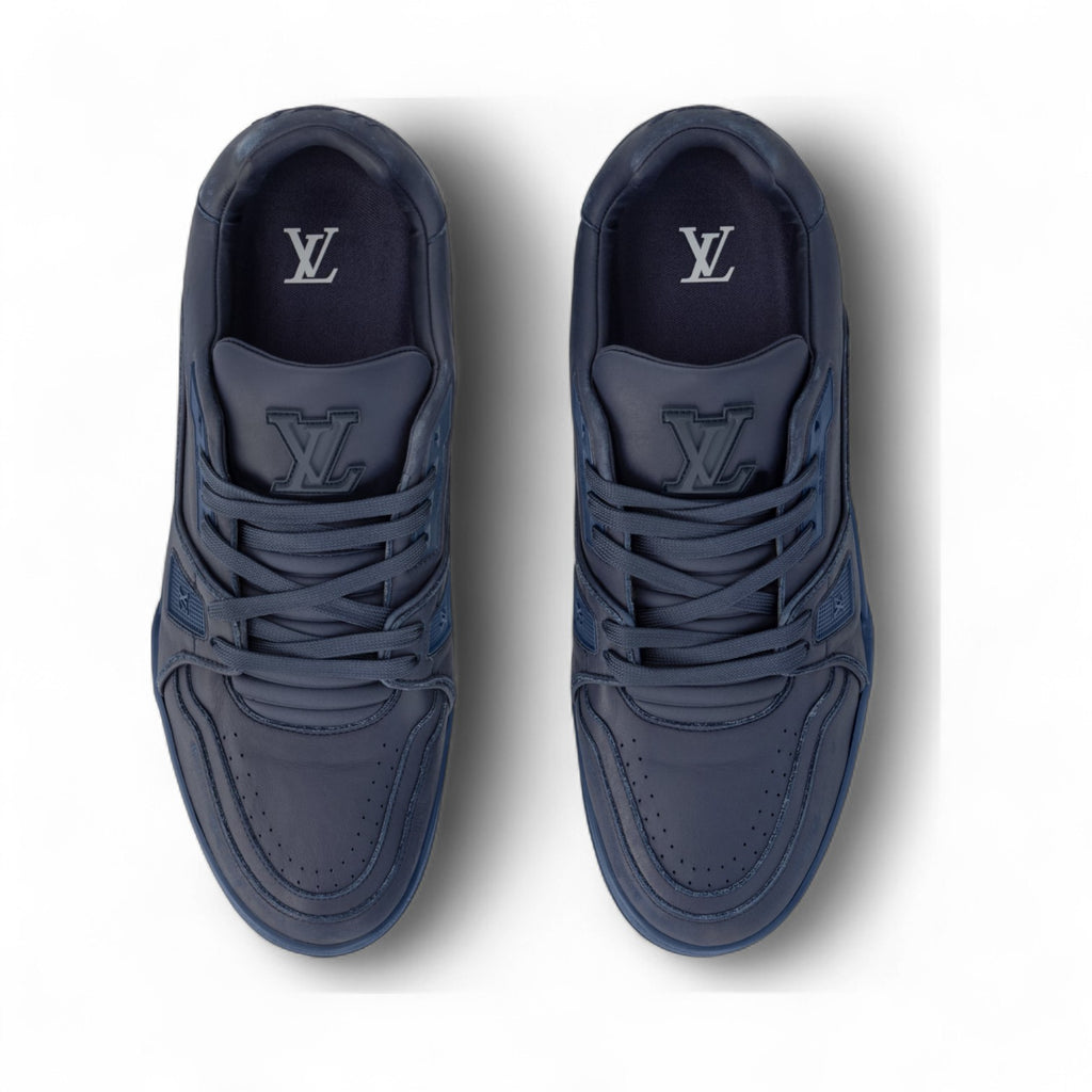 حذاء رياضي رجالي من لويس فيتون بمظهر عتيق مصنوع من جلد العجل باللون الأزرق الداكن