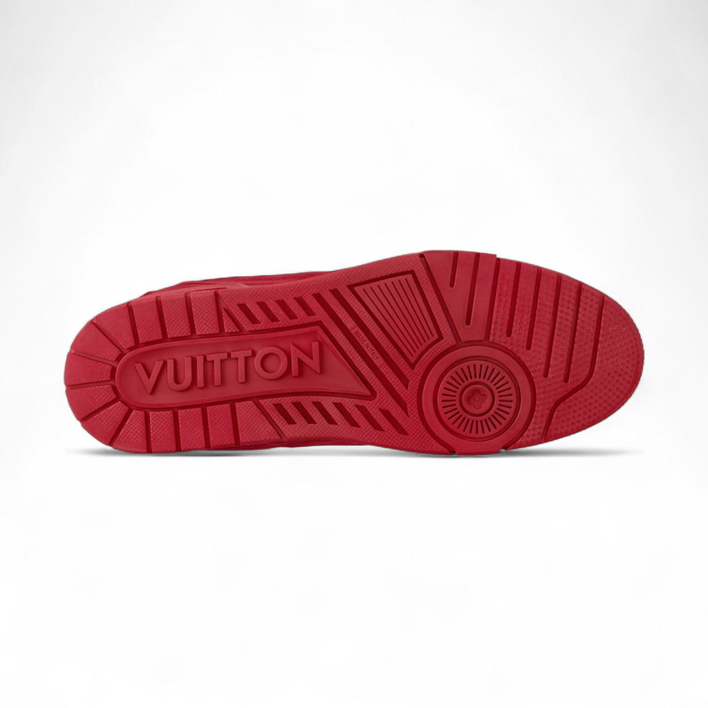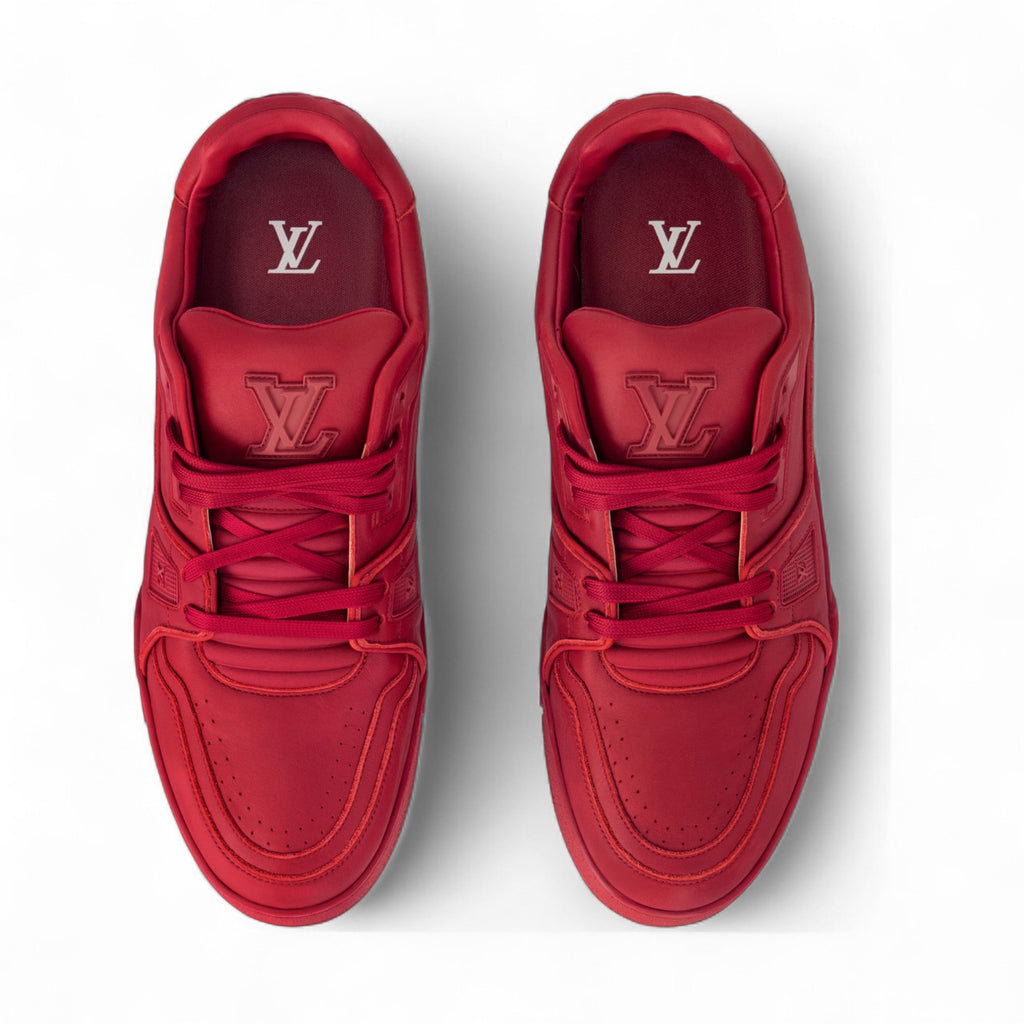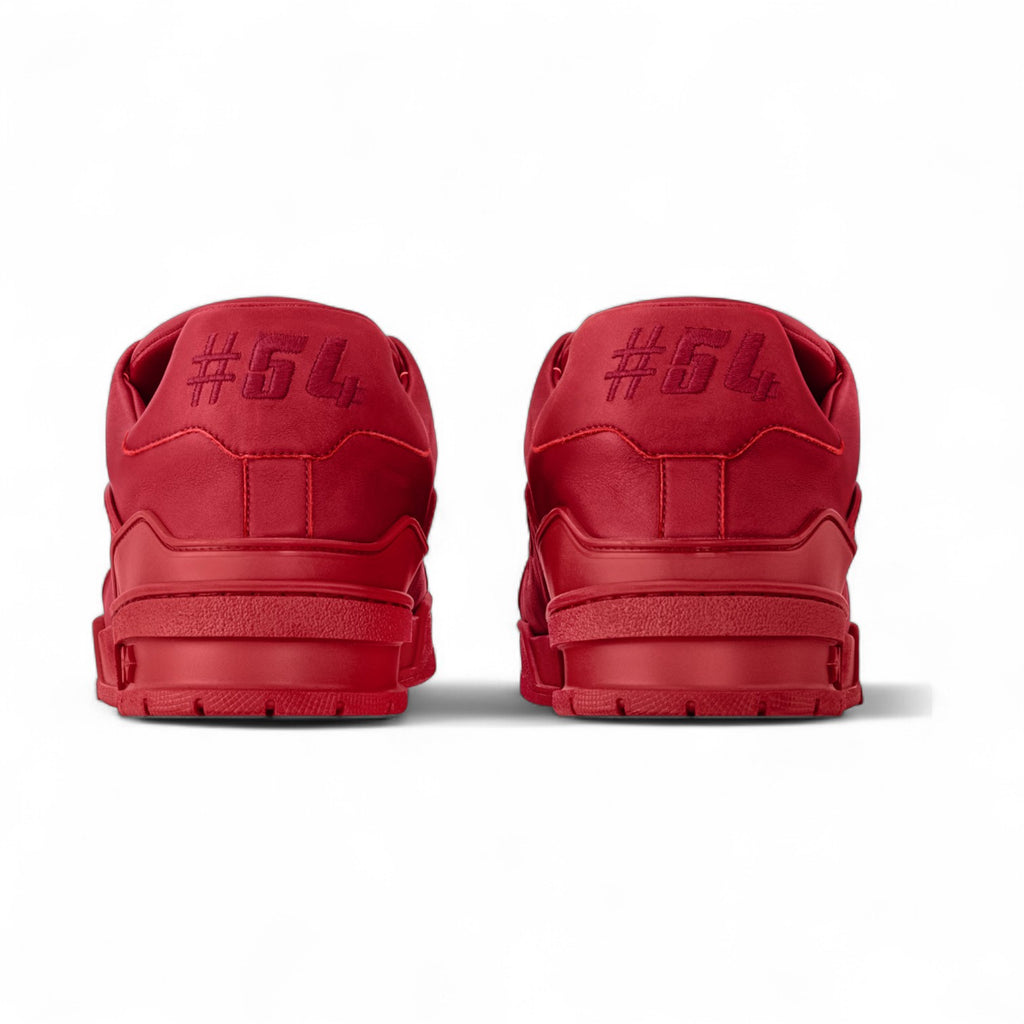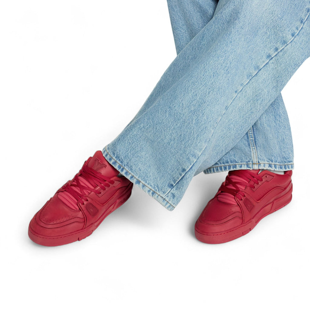 حذاء رياضي رجالي من لويس فيتون بمظهر عتيق من جلد العجل باللون الأحمر