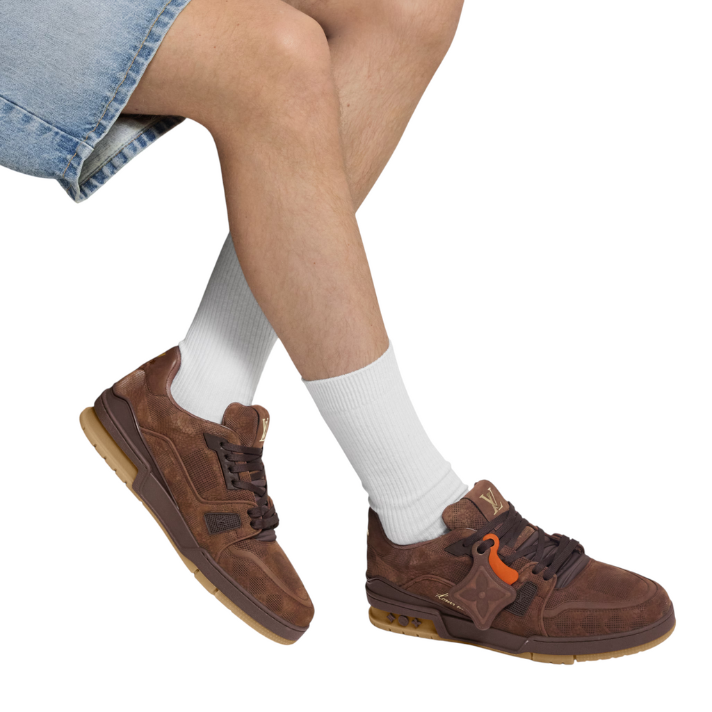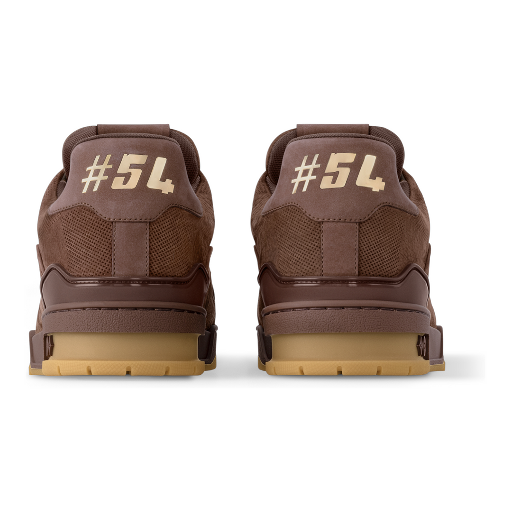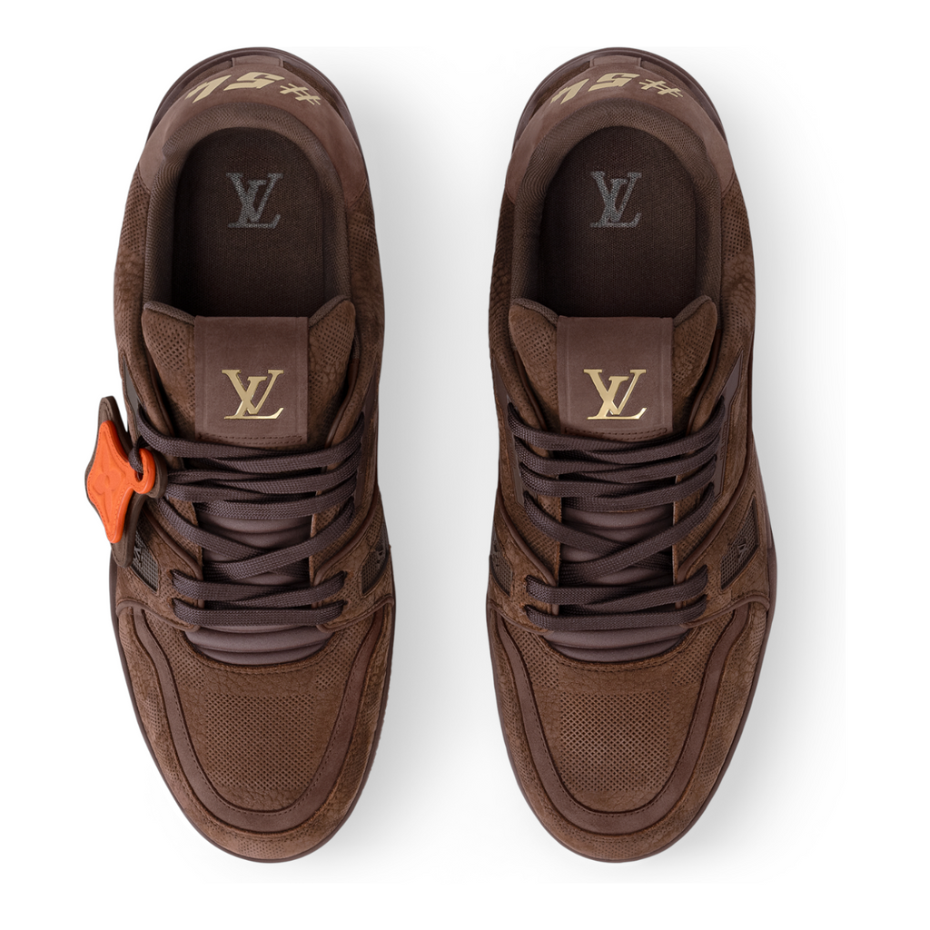 أُعيد تصميم حذاء LV Trainer الرياضي بجلد العجل من جلد النوبوك المنقوش بنقشة دامييه. يتميز هذا التصميم المميز، المستوحى من أحذية كرة السلة الكلاسيكية، بتفاصيله المميزة المتعددة، بما في ذلك بطاقات زهرة مونوغرام القابلة للإزالة على الأربطة، وتوقيع رقم 54 على الظهر، في إشارة إلى عام 1854، تاريخ تأسيس الدار.