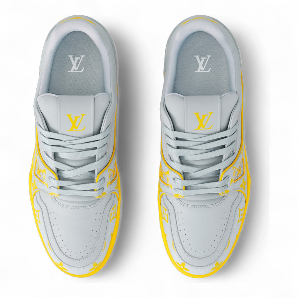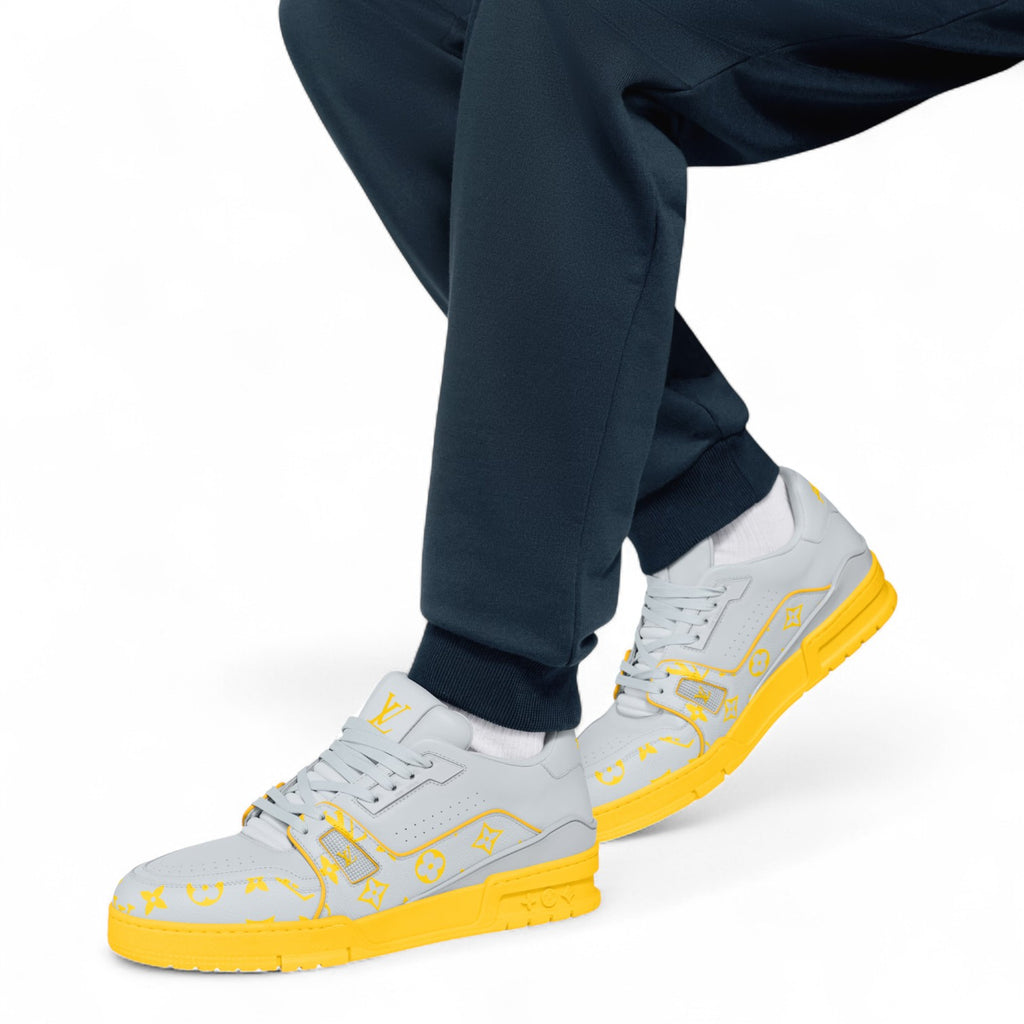 حذاء رياضي رجالي من جلد العجل مطبوع عليه شعار لويس فيتون باللون الأصفر