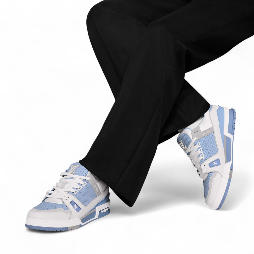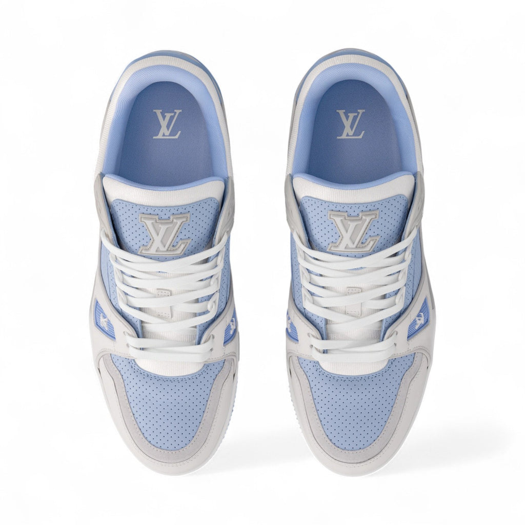 حذاء رياضي رجالي من لويس فيتون مصنوع من جلد العجل المثقب باللون الأزرق
