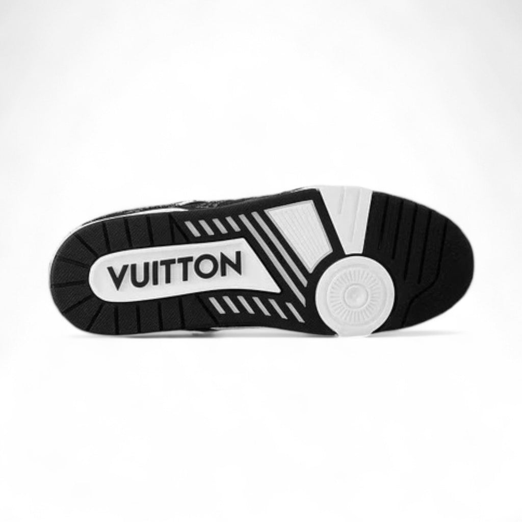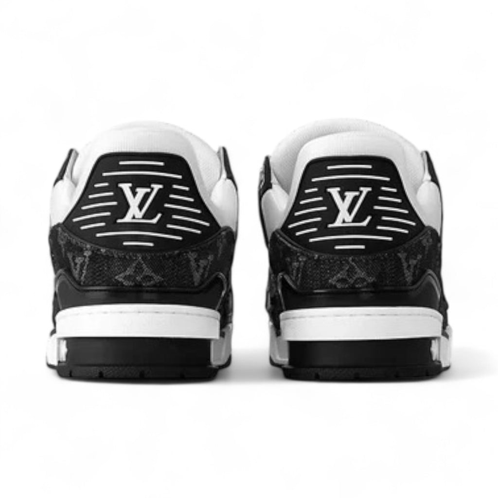 حذاء رياضي رجالي من LOUIS VUITTON مصنوع من جلد العجل المحبب بنقشة مونوغرام من الدنيم باللون الأبيض - سيتم شحن لمقاس هذا المنتج خلا 15-30 يوم