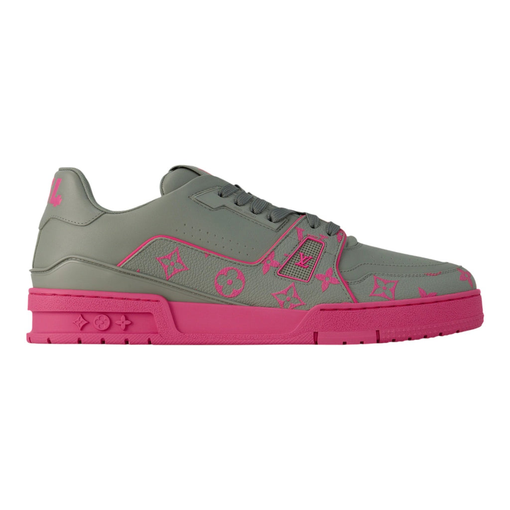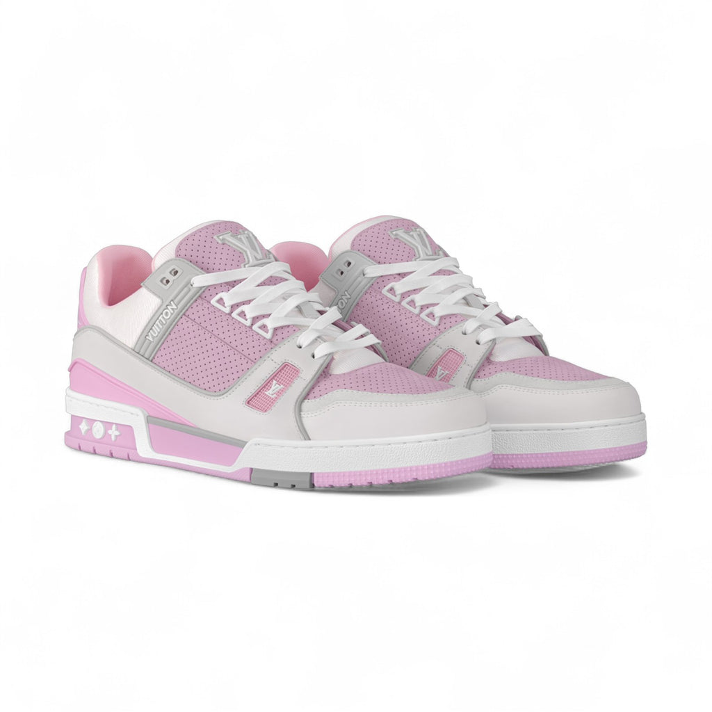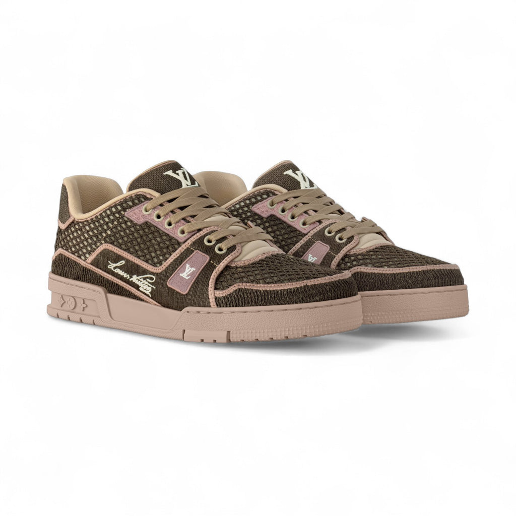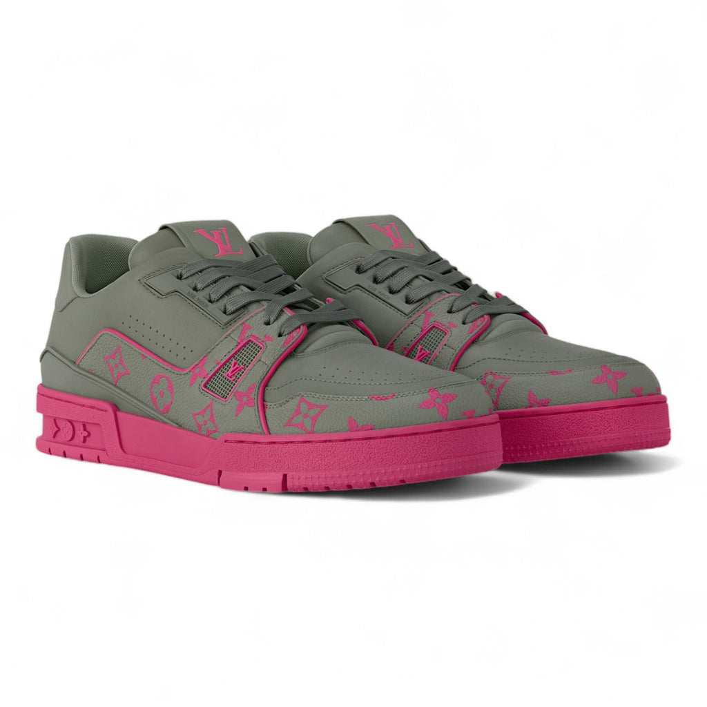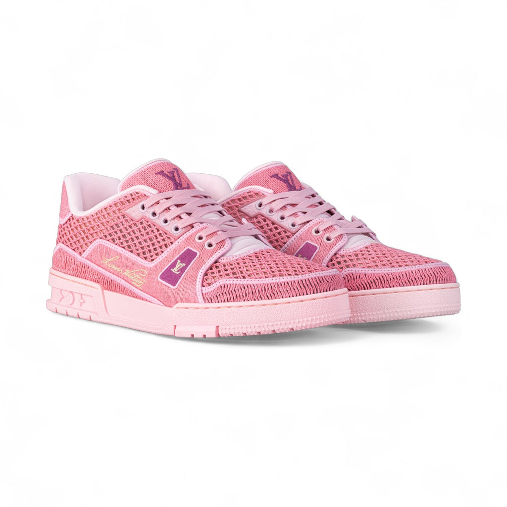 حذاء رياضي رجالي من جلد العجل مطبوع عليه شعار لويس فيتون باللون الوردي